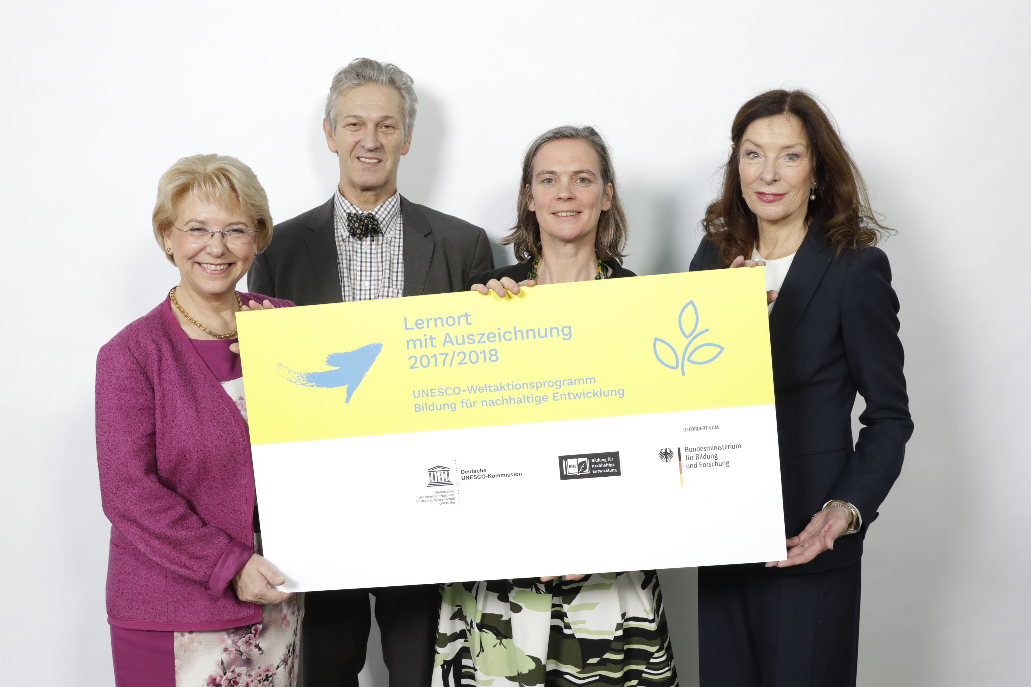 Gestern Abend am 27. November 2017 nahm Prof. Dr. Heike Molitor, Professorin für Umweltbildung/ Bildung für nachhaltige Entwicklung, stellvertretend für die Hochschule für nachhaltige Entwicklung Eberswalde (HNEE), auf dem Agendakongress in Berlin die Auszeichnung der Stufe 3 entgegen. Cornelia Quennet-Thielen, Staatssekretärin im Bundesministerium für Bildung und Forschung, und die Präsidentin der Deutschen UNESCO-Kommission, Prof. Dr. Verena Metze-Mangold, waren es, die insgesamt 6 Kommunen, 28 Netzwerke und 29 Lernorte prämierten.