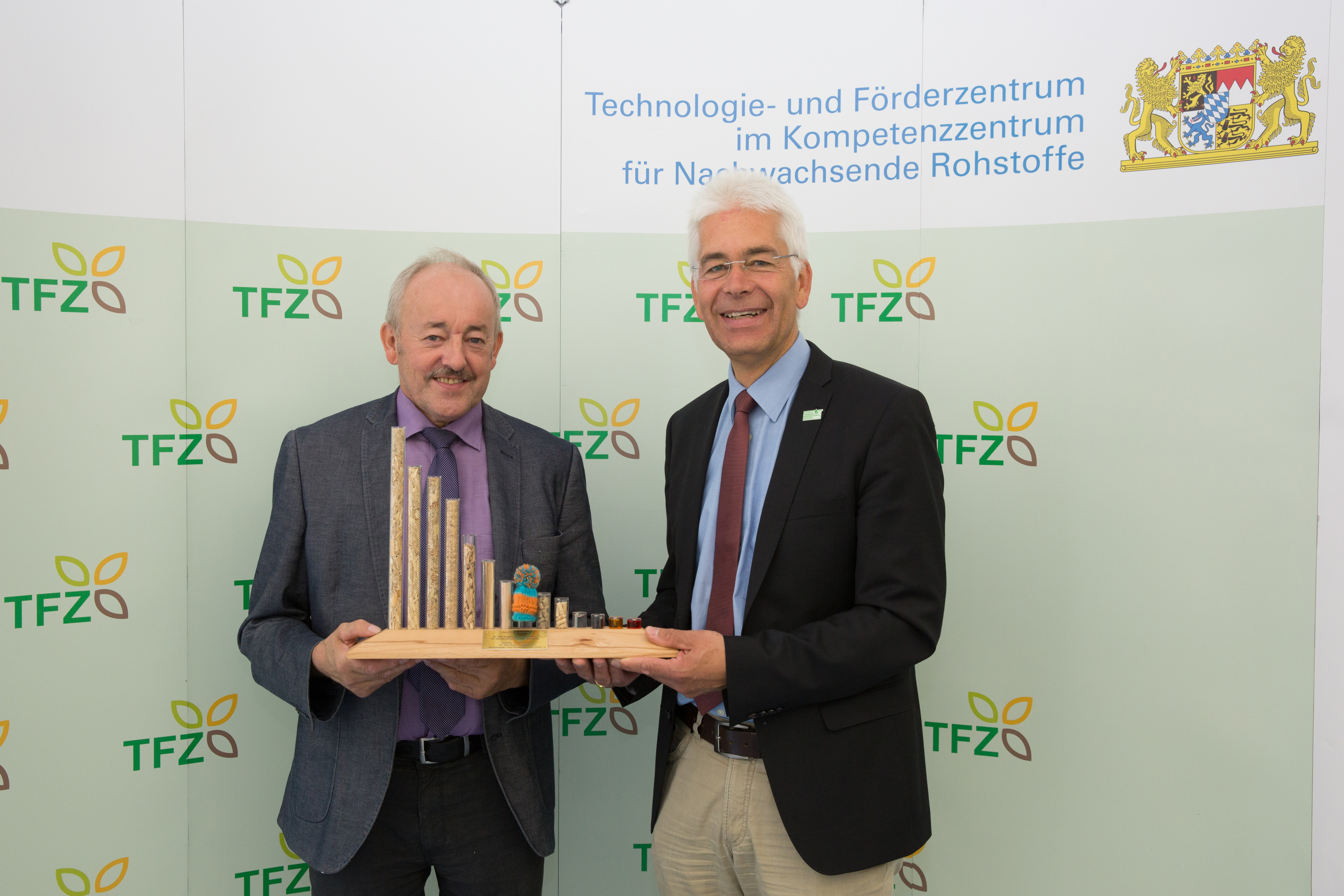 Das Technologie- und Förderzentrum im Kompetenzzentrum für Nachwachsende Rohstoffe (TFZ) in Straubing hat Franz Kustner, dem ehemaligen Bezirkspräsidenten des Bayerischen Bauernverbandes und MdL a.D., die TFZ-Brennstofforgel überreicht. Das TFZ zeichnet damit Persönlichkeiten aus, die sich in ihrer beruflichen Laufbahn außerordentlich für die Bioenergie aus Nachwachsenden Rohstoffen eingesetzt haben. Bei der „Brennstofforgel“ handelt es sich um ein Exponat des TFZ, das die unterschiedliche Energiedichte von Bioenergieträgern im Vergleich zu Heizöl darstellt und optisch an die Pfeifen einer Orgel erinnert.