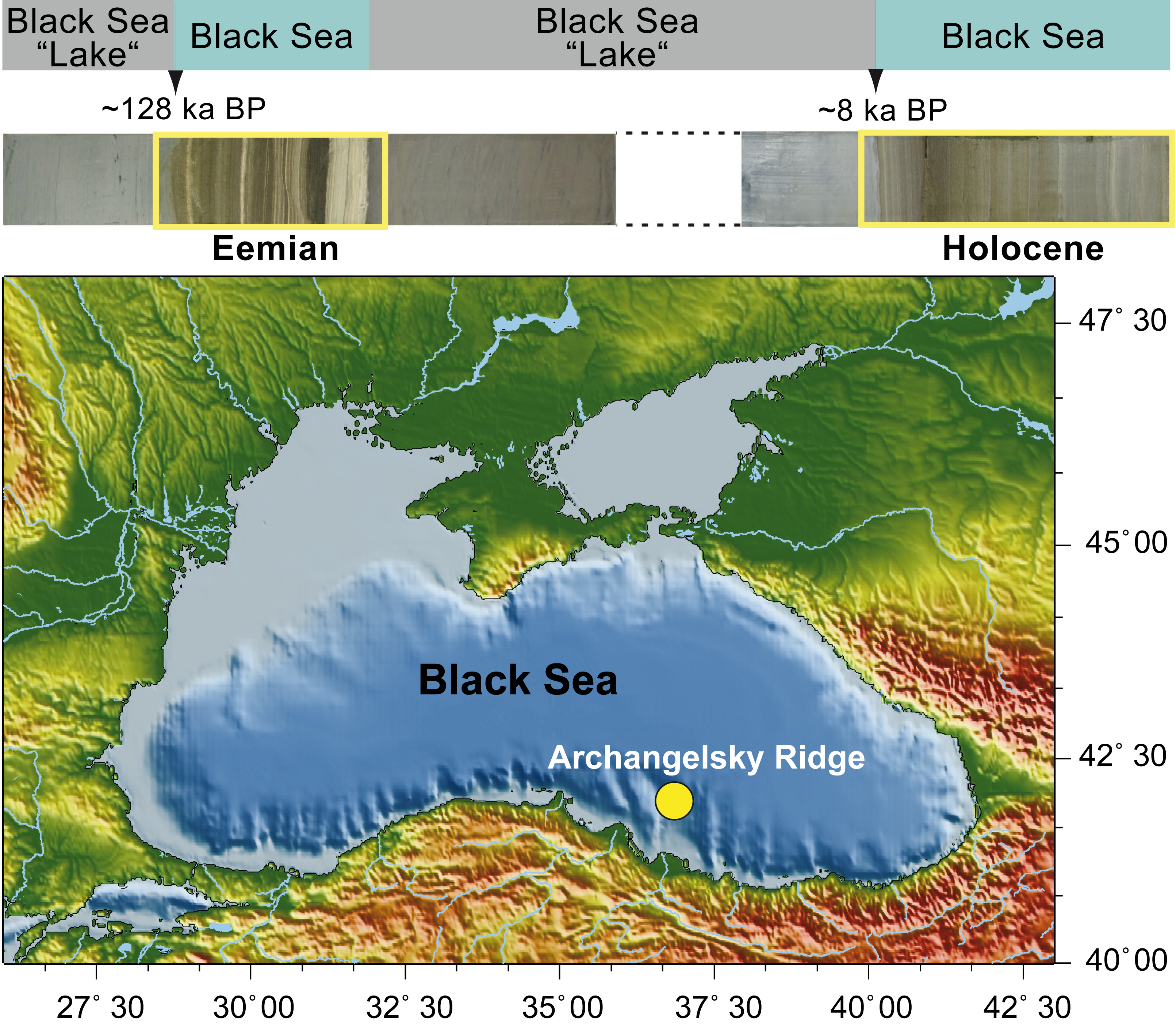 Postglacial warming during the Eemian and the Holocene caused significant changes in the Black Sea. The large polar ice sheets disappeared, the global sea level rose, and once flooding the shallow Bosporus sill, the salty and dense water masses of the Mediterranean Sea intruded the formerly Black Sea “Lake”. This led to a strong stratification with saline deep waters below the brackish surface waters. At the same time, elevated sea surface temperatures resulted in an increased productivity and flux of organic matter, ultimately exhausting oxygen in the basin during its decomposition. The interaction of these processes finally lead to the generation of enormous “dead zones” in the Black Sea.