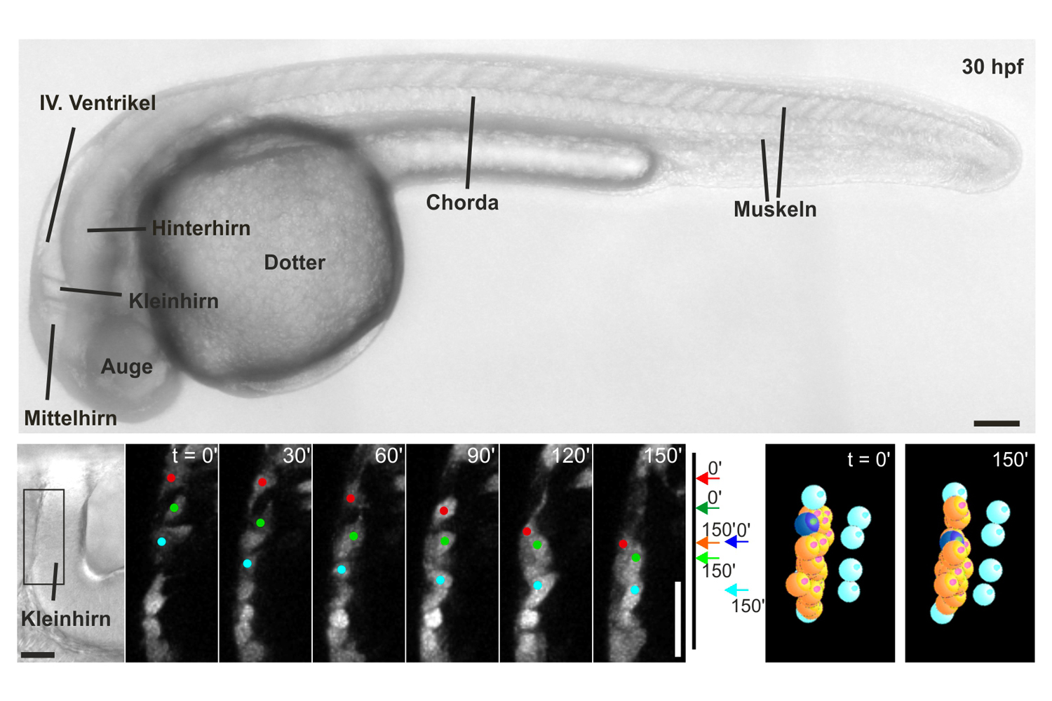 Das fachübergreifende Forschungs-Team näherte sich dieser Frage mit genetischen Methoden und optischen Analyseverfahren. Mithilfe eines minimalinvasiven, modernen Mikroskopie-Verfahrens konnten migrierende Nervenzellen unter verschiedenen Testbedingungen in lebenden Zebrafisch-Embryonen beobachtet werden. Sie eigenen sich besonders als Tiermodell für das menschliche Nervensystem. Da die Fische durchsichtig sind, können die Neuronen während der Migration gut beobachtet werden, ohne den Embryo zu beeinträchtigen.
