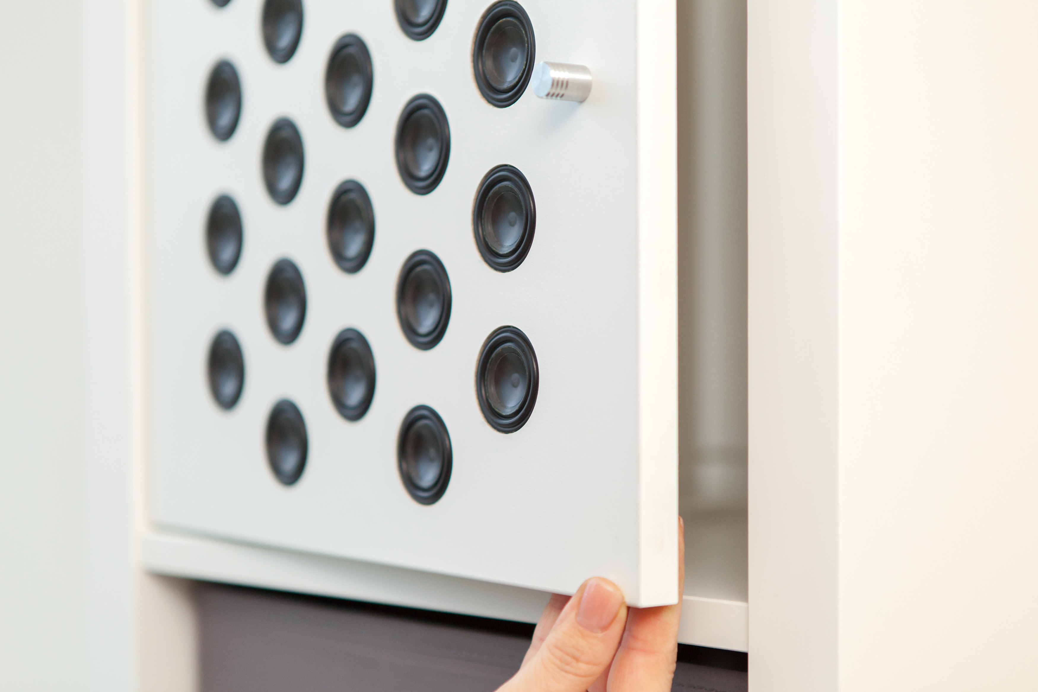 As the speakers are extremely variable in size and design, requiring a depth of enclosure of less than 2 cm, designers of furniture as well as interior designers will not be limited in their freedom of design. The speakers can be integrated with practically any piece of furniture (such as sofas, armchairs, or tables), or entirely hidden behind walls. At imm cologne, the Fraunhofer experts will be showcasing three versions of the speaker being integrated with another object: a picture frame, a rack, and a cabinet door. And, of course, visitors will have the chance to experience the great sound quality of the speakers.
