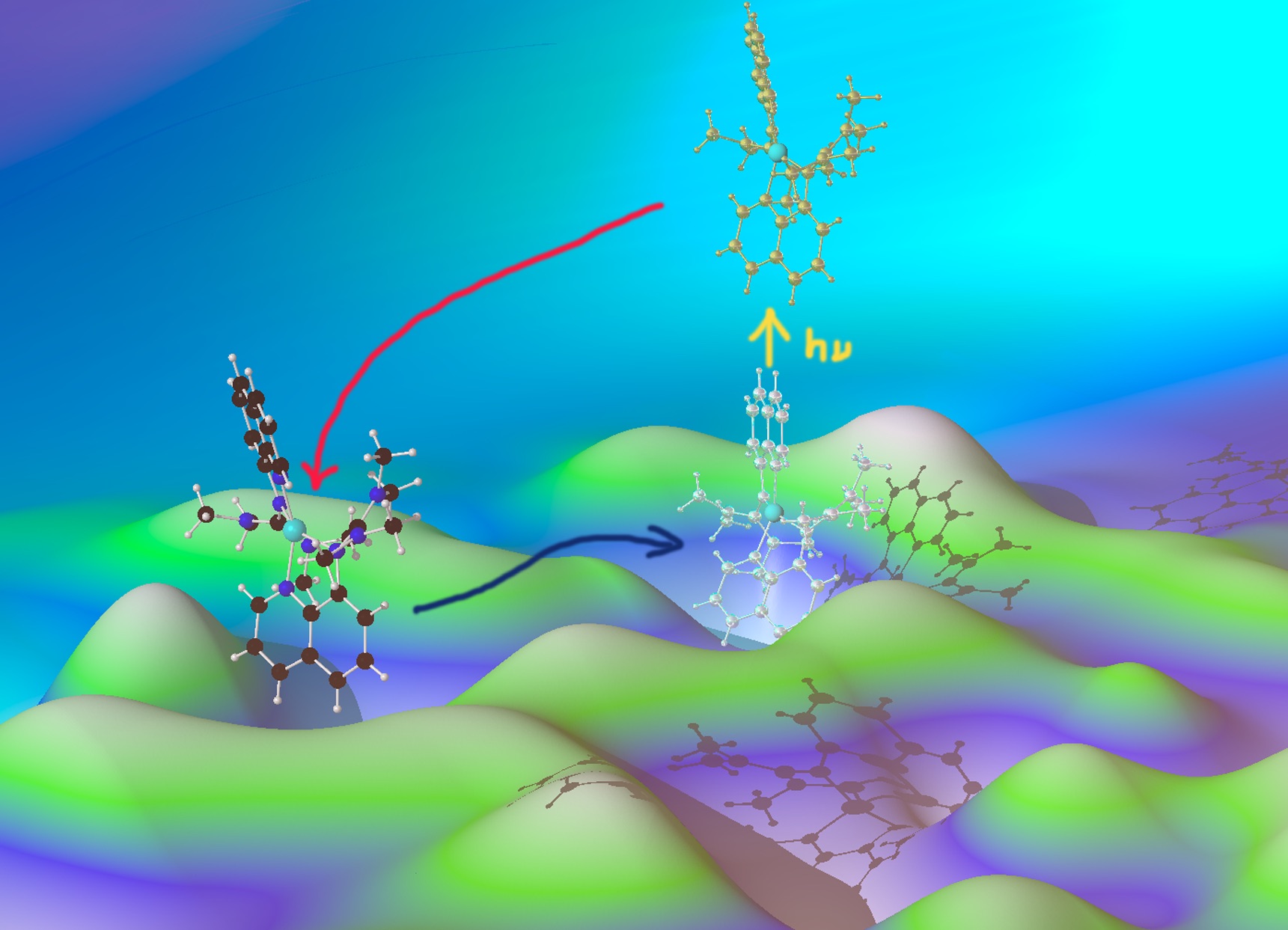The study shows in detail how the process proceeds: from the initial state (copper in an oxidation state of +1) an electron is transferred from the copper to one of the ligands, by optical excitation. Within femtoseconds (trillionths of a second) the excited state created decays into another, still excited state, known as the S1 state. In this configuration, the geometry is slightly relaxed.