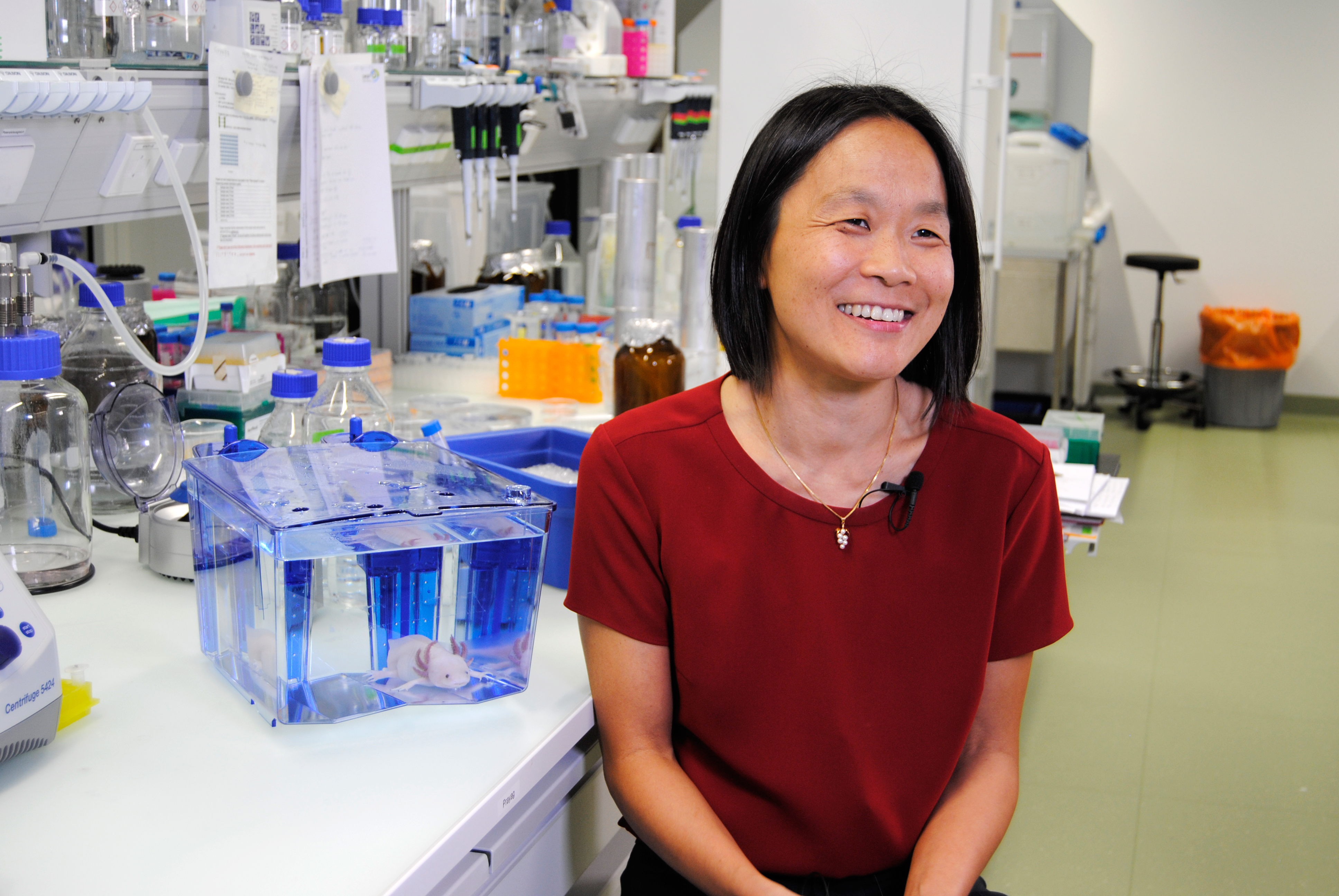 One of the largest axolotl-colonies is maintained by the team of Elly Tanaka, now at the Research Institute of Molecular Pathology (IMP) in Vienna. The Tanaka-group that was based at the DFG-Center for Regenerative Therapies Dresden and the Max Planck Institute of Molecular Cell Biology and Genetics (MPI-CBG) until 2016 is studying the molecular cell biology of limb and spinal cord regeneration and how these mechanisms evolved. Over the years, the team has developed an extensive molecular toolkit for the axolotl, including comprehensive transcriptome data that reveal protein-coding sequences in the animal’s genome. Using these tools, Elly Tanaka and her colleagues were able to identify the cells that initiate regeneration and describe molecular pathways that control the process.