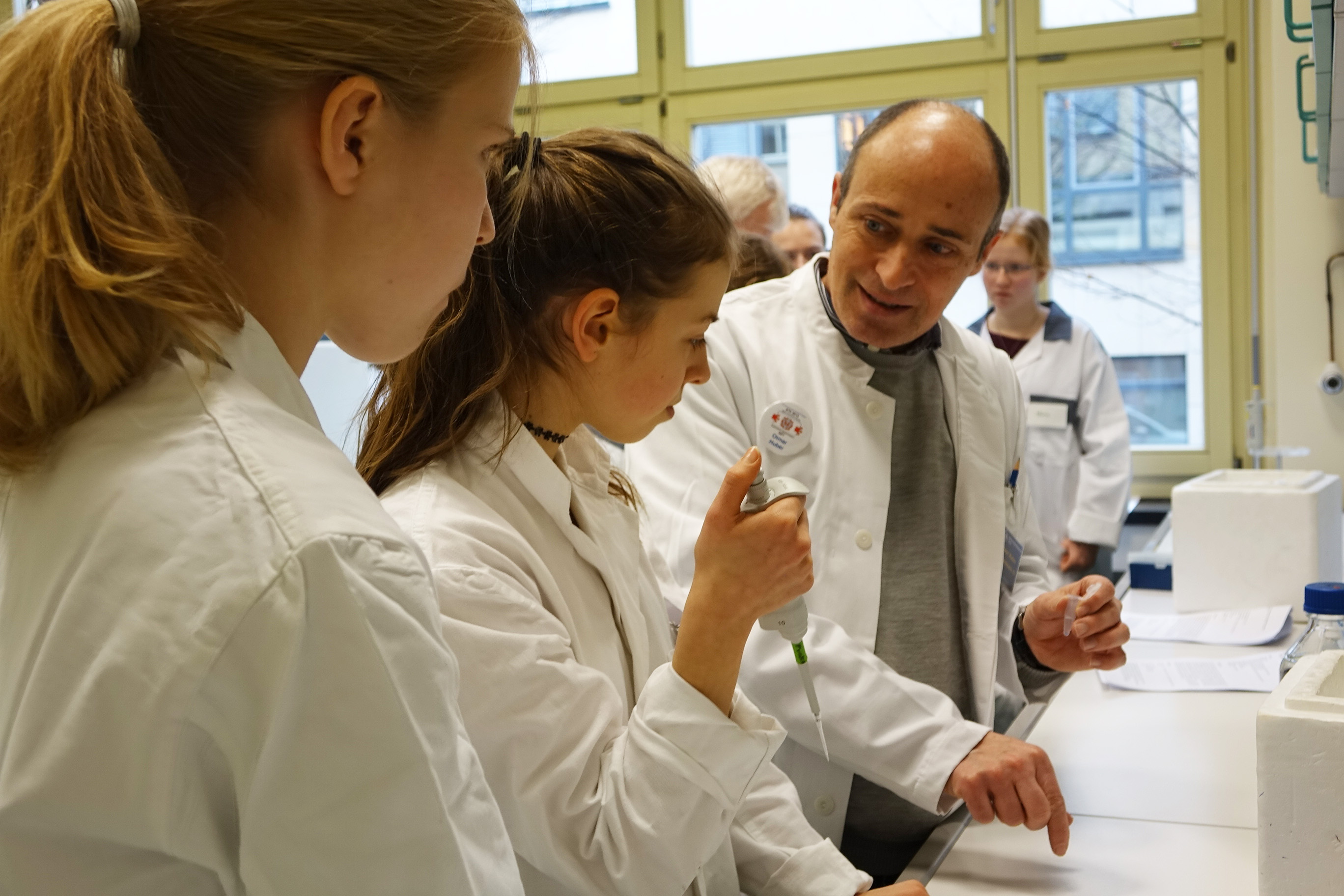 „Wir wollten vor allem einen praktischen Einblick in die Biochemie geben, nicht nur theoretisches, sondern auch anwendungsbezogenes Wissen vermitteln. Die Schüler konnten dabei praktische Erfahrungen sammeln und sich unter anderem im Umgang mit den in der Molekularbiologie üblichen kleinen Volumina versuchen. Denn eines unserer Anliegen ist auch, das vorhandene Potential der Schüler weiter zu fördern. Vielleicht trägt diese erste praktische Erfahrung mit dazu bei, sich für die Biochemie als Studienfach zu entscheiden. Alle zeigten sich hochmotiviert und konzentriert“, erklärt Prof. Dr. Otmar Huber, Direktor des Instituts für Biochemie II.