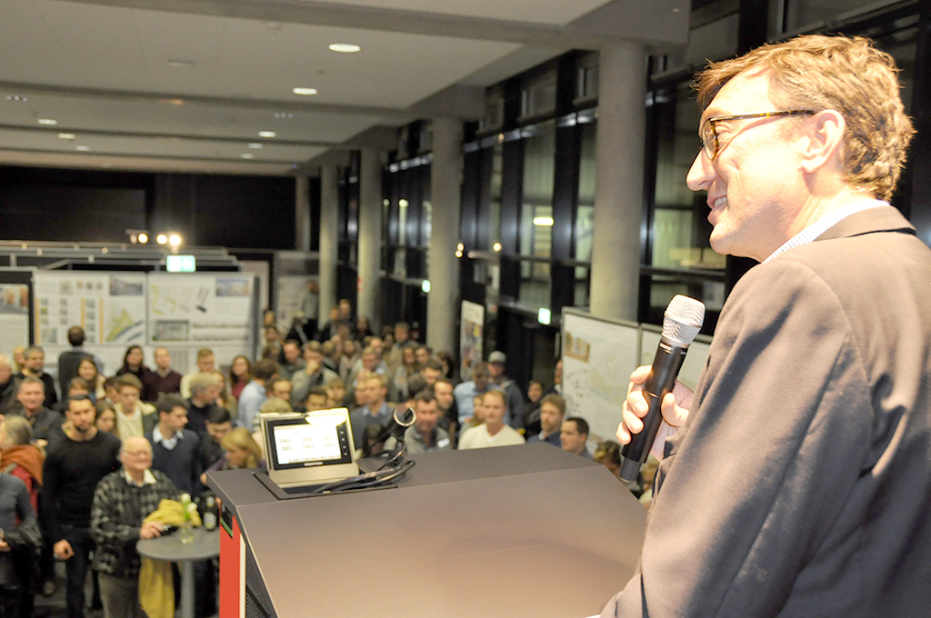 Anschließend hatten die Gäste ausreichend Gelegenheit, die Arbeiten aus Forschung, Entwicklung und Bau-Praxis zu begutachten und sich mit den Studierenden über die Arbeiten auszutauschen. Bevor es aber zu dem interessanten Austausch kam, hatten die Studierenden das Wort.