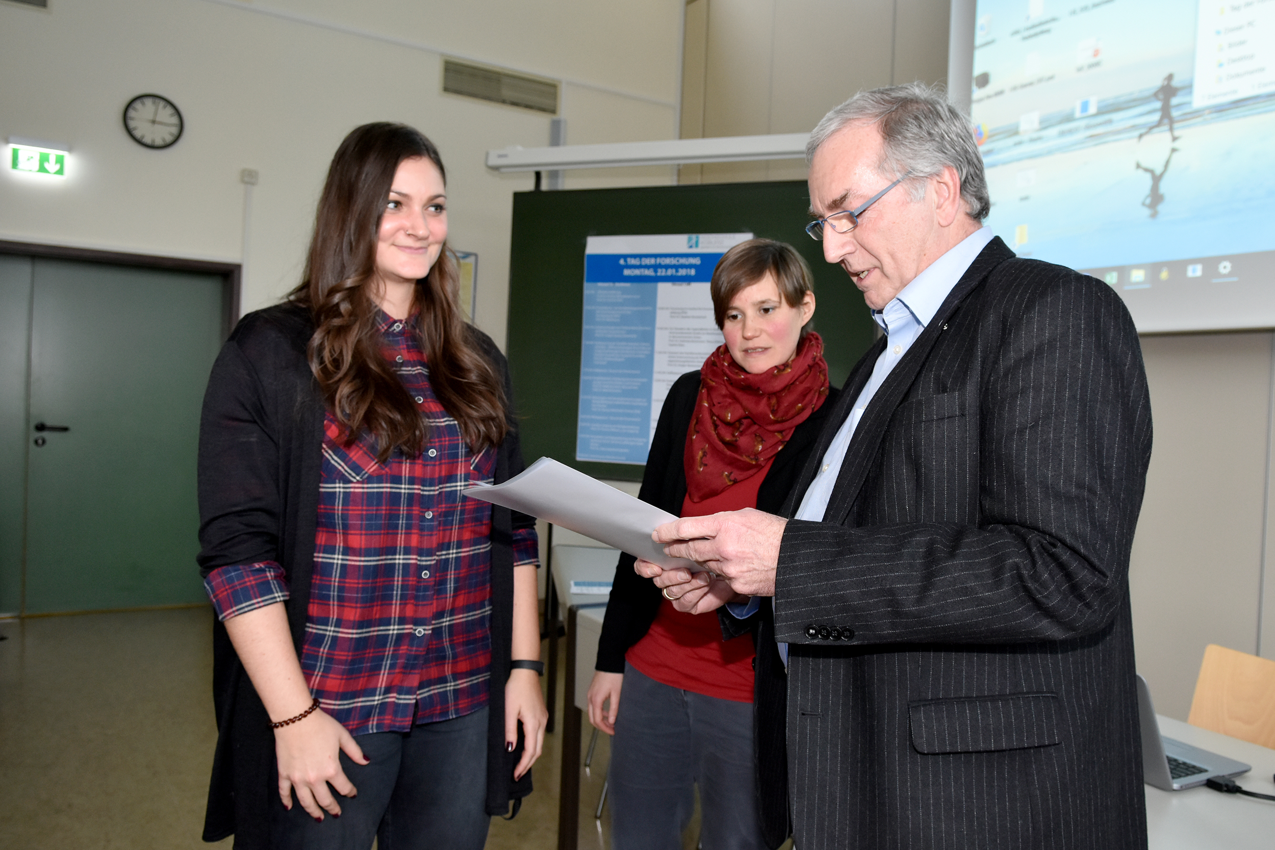 Die 14 Vorträge stellten die große thematische Bandbreite der Forschungsaktivitäten der Hochschule Koblenz dar. So stellten beispielsweise Prof. Dr. Kathinka Beckmann, Thora Ehlting und Sophie Klaes vom Fachbereich Sozialwissenschaften ihre Studie zur Situation der Jugendämter in Deutschland vor, die bundesweite Aufmerksamkeit erhält. Ein Beispiel für die standort- und fachbereichsübergreifende Zusammenarbeit von Forscherinnen und Forschern lieferte der Vortrag zum Thema „Modellbasierte Schätzung der Kontaktbedingungen zwischen Reifen und Fahrbahn“, bei dem Prof. Dr. Maik Kschischo und Manuel Oster vom Remagener Fachbereich Mathematik und Technik mit Prof. Dr. Matthias Flach vom Koblenzer Fachbereich Ingenieurwesen kooperiert hatten. Die Kooperation ist aus einem vergangenen „Tag der Forschung“ entstanden.