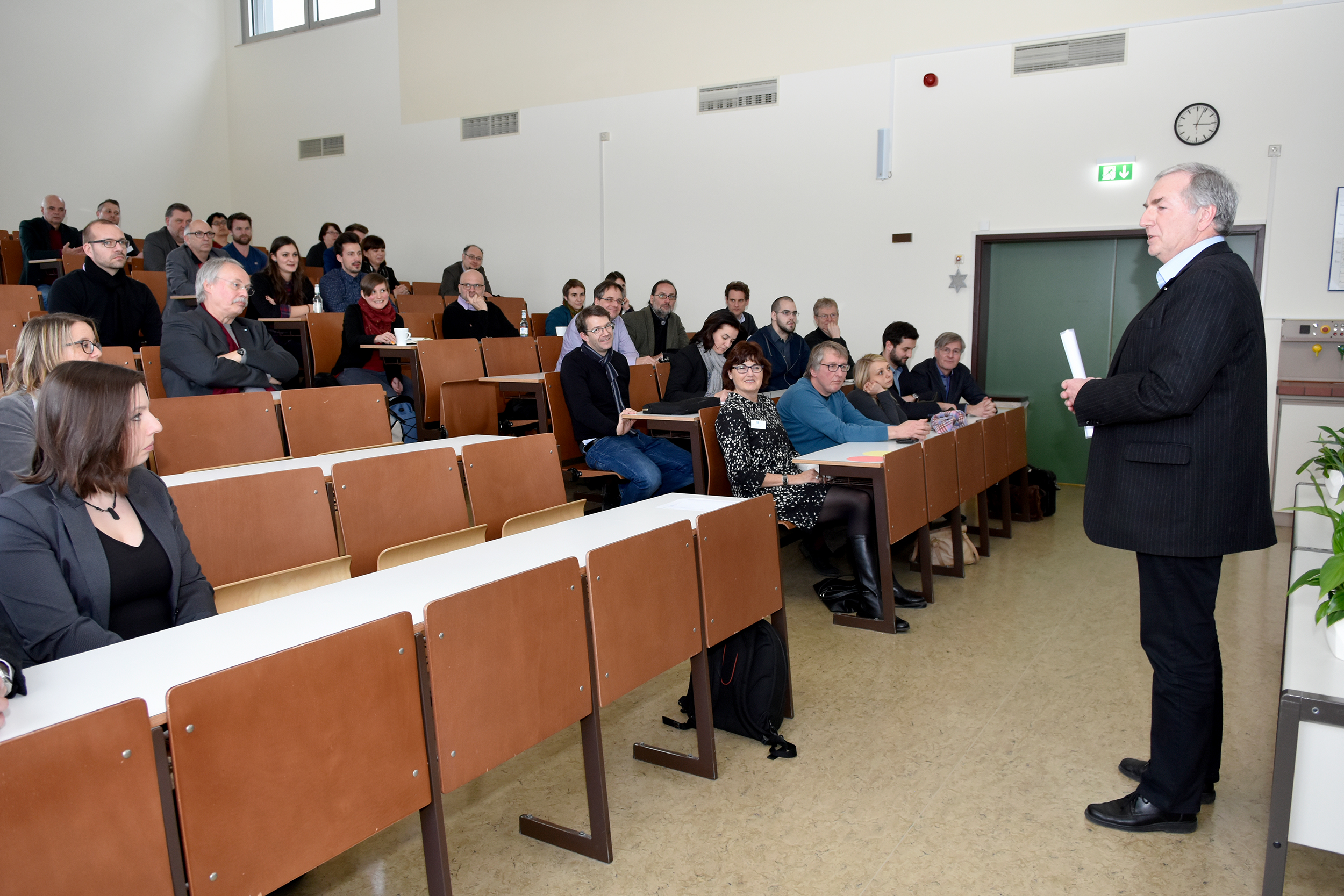 Bei der Eröffnung des 4. Forschungstags stellte Prof. Dr. Dietrich Holz, Vizepräsident für Forschung, im Jahresrückblick die Entwicklung der Hochschule Koblenz im Bereich Forschung, Entwicklung und Transfer vor. So wurden zum zweiten Mal Forschungsprofessuren vergeben: Prof. Dr. Bert Leyendecker aus dem Fachbereich Wirtschaftswissenschaften und Prof. Dr. Olaf Krause aus dem Fachbereich bauen-kunst-werkstoffe können sich im Rahmen ihrer Forschungsprofessuren in den nächsten drei Jahren noch intensiver ihrer Forschung widmen. Im Rahmen der Veranstaltung gab Krause eine kurze Einführung in das neue hochauflösende Feldemissions-Rasterelektronenmikroskop, welches mit Fördermitteln der Carl-Zeiss-Stiftung erworben werden konnte.