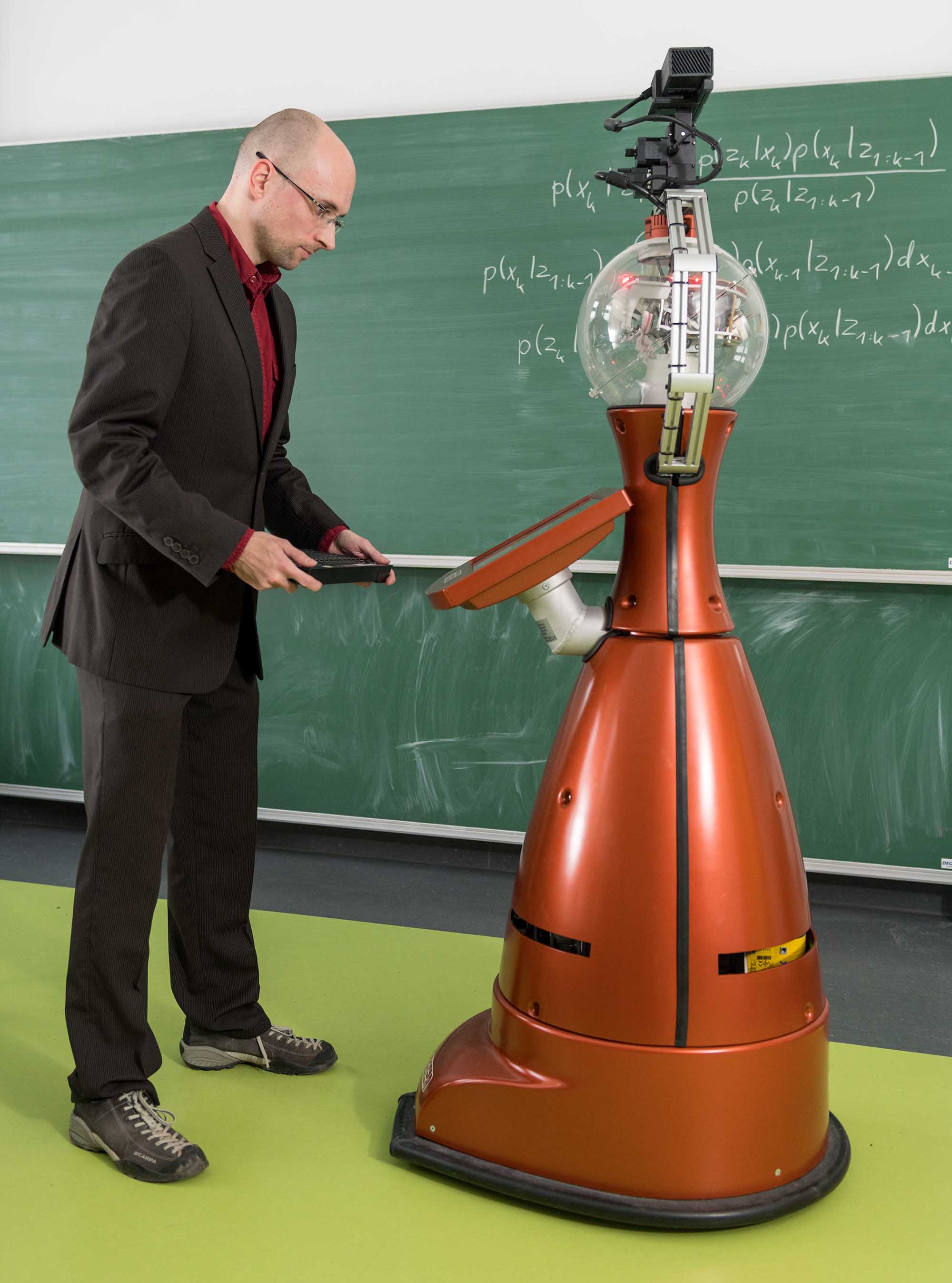 „Meine Software-Version kann auch Personen erkennen, die sich zur Seite drehen, z.B. zu einem Ausstellungsstück“, erklärt Poschmann den Vorteil seiner Neuentwicklung. Poschmann verteidigte seine Dissertation mit dem Titel „Multi-Sensor Multi-Person Tracking on a Mobile Robot Platform“ am 1. Februar an der TU Bergakademie Freiberg.