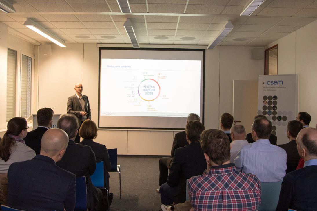 CSEM is one of the largest research institutes in Switzerland with various locations, where mainly mircoelectonical and microtechnical solutions are developed with partners in the industry. Philipp Schmid, Head of the robotics and automation division, introduced the latest developments in production automation and quality control: especially self-learning systems are more and more used for difficult measuring tasks. This was confirmed by Dr. Thomas Fries, CEO at FRT GmbH, in his presentation about automated control in MEMS fabrication. The FRT devices in the “MicroProf” series are using more and more “deep learning” concepts, too.