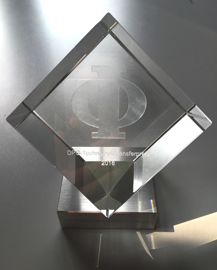 Der DPG-Technologietransferpreis wird am 7. März 2018 im Rahmen der 82. DPG-Jahrestagung in Erlangen überreicht. Die Deutsche Physikalische Gesellschaft (DPG) ehrt damit die drei Einrichtungen, denen es in herausragender Weise gelungen ist, wissenschaftliche Erkenntnisse wirtschaftlich zu verwerten. „Die Arbeitsgruppe von Prof. Martin Wegener am Institut für Nanotechnologie des KIT hat die dreidimensionale Laserlithographie von einem wissenschaftlichen Verfahren zur Herstellung von Photonischen Kristallen zu einem Werkzeug zur Herstellung komplexer dreidimensionaler Mikro- und Nanostrukturen für vielfältigste industrielle Einsatzmöglichkeiten entwickelt“, sagt Udo Weigelt, Vorstandsmitglied Industrie und Wirtschaft der DPG.