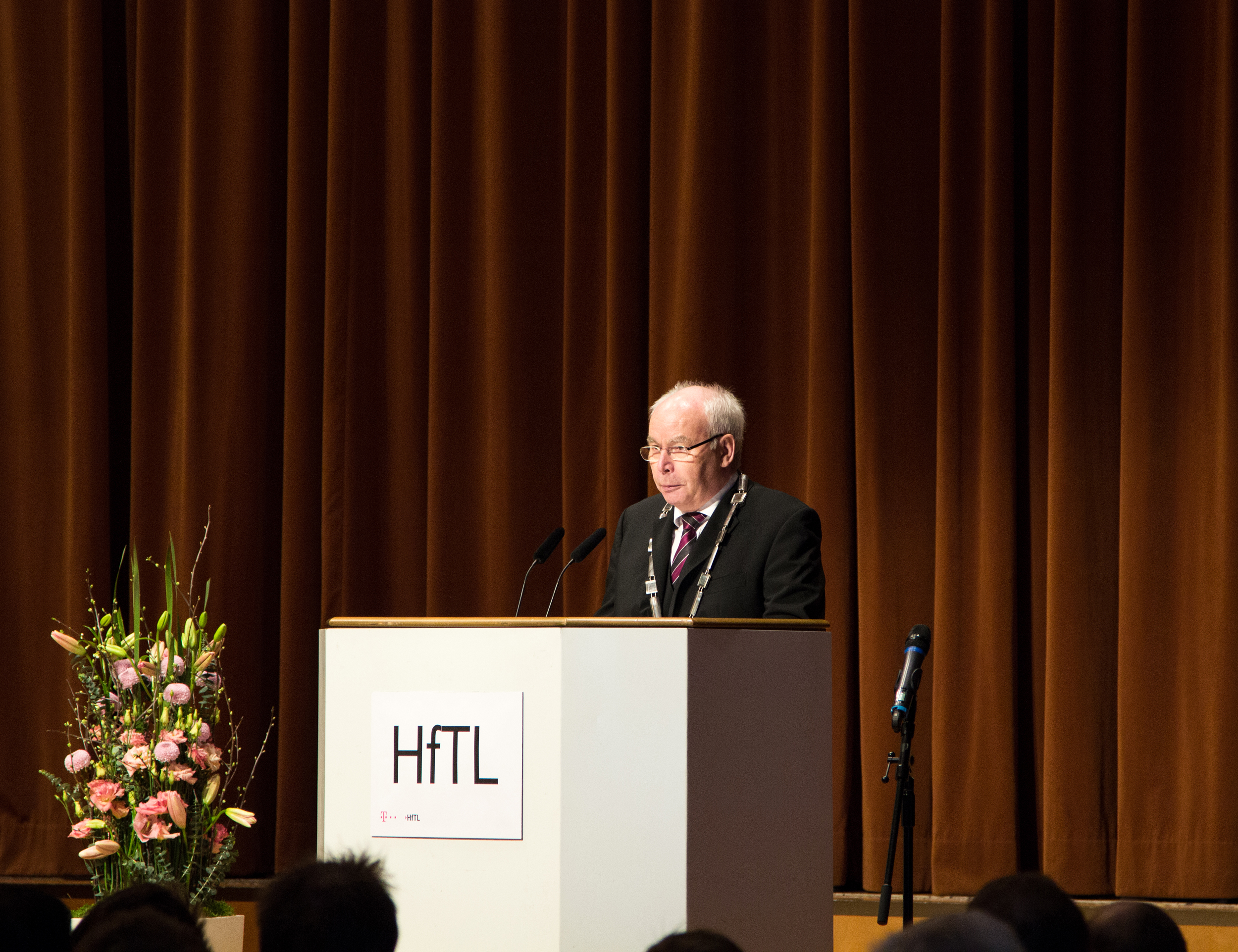 In seiner Festansprache ging der Rektor der HfTL auf die Herausforderungen eines dualen Studiums, die Vereinbarkeit von akademischer Ausbildung und dem parallelen Erwerb praktischer Fähigkeiten in unterschiedlichen Bereichen der Deutschen Telekom ein. Damit dieser Balanceakt auch gelingt, ist die internetbasierte Lehre ein wichtiger Bestandteil des dualen Studienmodells und ermöglicht den Studierenden einen Wissenserwerb auch außerhalb des klassischen Hörsaals.