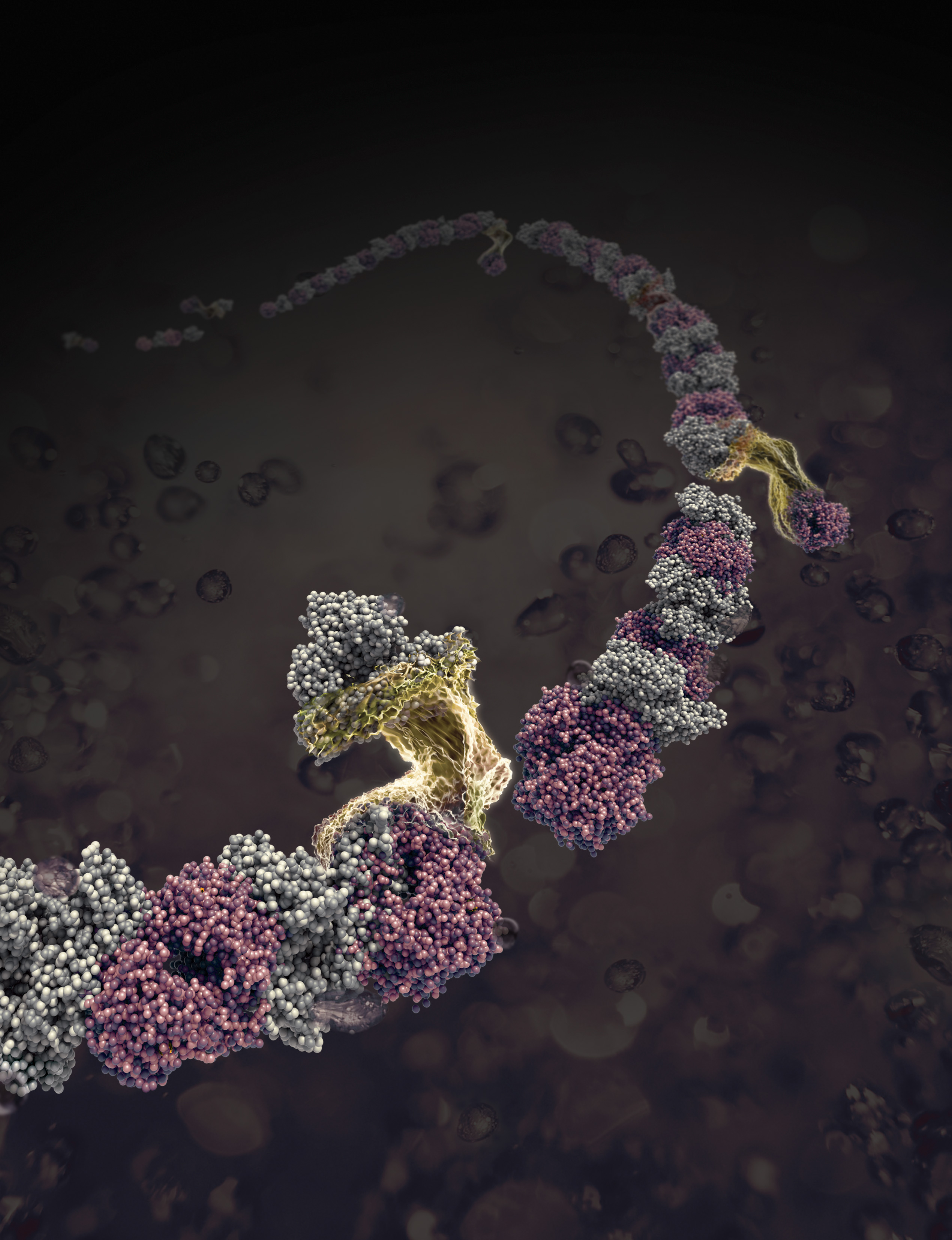 „Proteinfasern bestehen aus mehreren natürlichen Eiweiß-Makromolekülen“, erklärt Prof. Dr. Klaus D. Jandt vom Otto-Schott-Institut für Materialforschung der Uni Jena und fährt fort: „Die Natur baut diese Nanomaterialien, die einen Durchmesser von etwa einem Tausendstel eines menschlichen Haares aufweisen, durch Selbstorganisationsprozesse.“ Was für die Natur mit ihrer Jahrmillionen langen Erfahrung kein Problem ist, lässt sich aber meist nicht so einfach vom Menschen nachbauen. Dennoch gelang es Prof. Jandt und seiner Gruppe in den vergangenen Jahren, Proteinnanofasern aus den natürlichen Proteinen Fibrinogen und Fibronektin zu erzeugen und die Größe und die Struktur dieser Fasern – linear oder verzweigt – zu steuern.