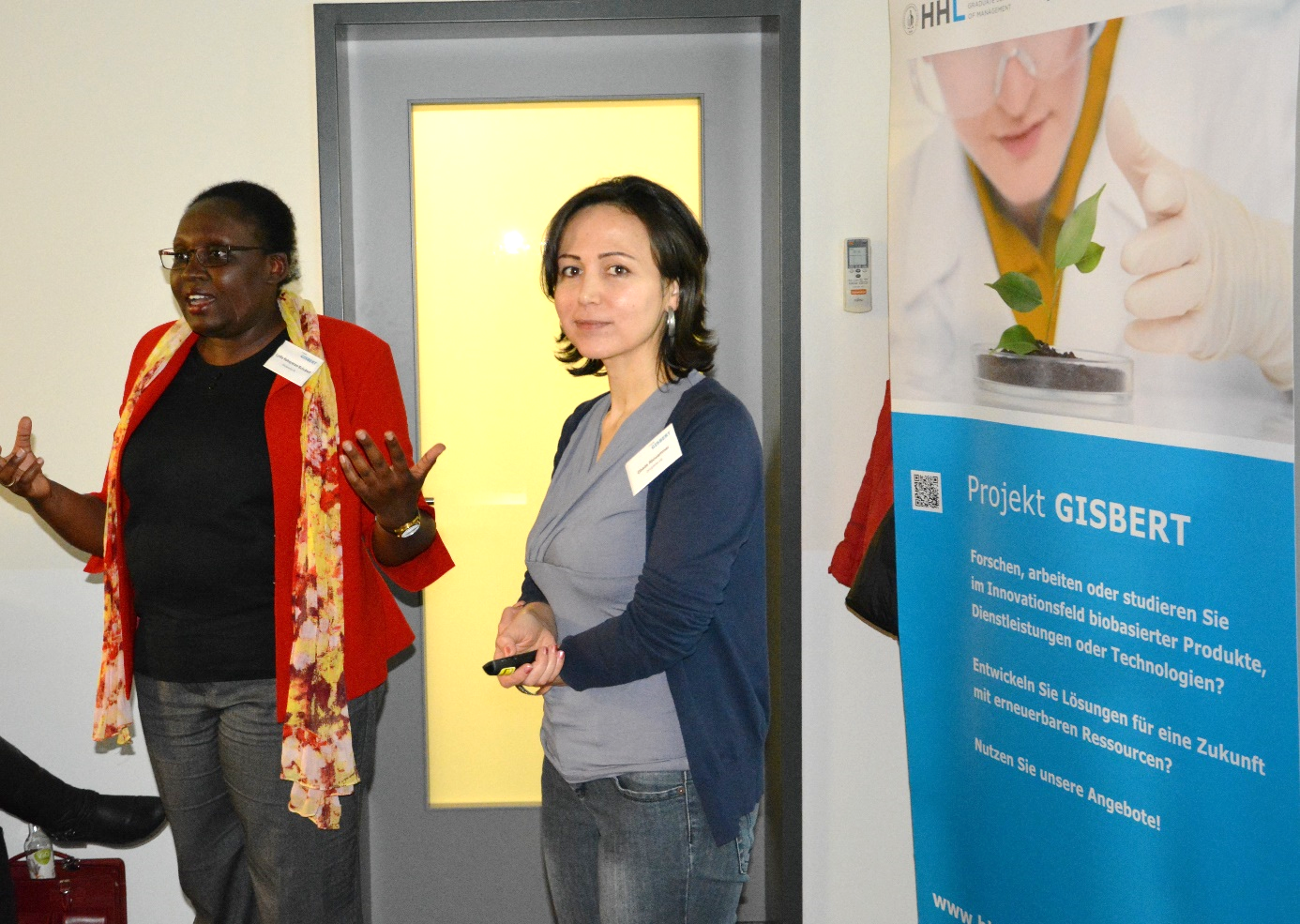 Dr. Ghada Abouammar und Lydia Nakayenze-Schubert stellten ihr Startup Oncaplanta vor, welches sich auf biobasierte Pflanzenschutzmittel spezialisiert hat. Das Gründungsprojekt mit internationalem Hintergrund hat sich 2017 in Leipzig gegründet und ist dabei, marktreife biobasierte Fungizide zu entwickeln, bspw. für den Obst- oder Weinbauern. Man konnte förmlich spüren, wie die Geschäftsidee die Zuhörenden in ihren Bann zog. Zeit also, um dem zunehmenden Wunsch nach Austausch den gebührenden Raum zu geben. Dafür sorgte das bewährte Meet & Greet. Bei einem kleinen Imbiss und angeregten Gesprächen fand das 5. BioEconomy Matchmaking seinen perfekten Ausklang.