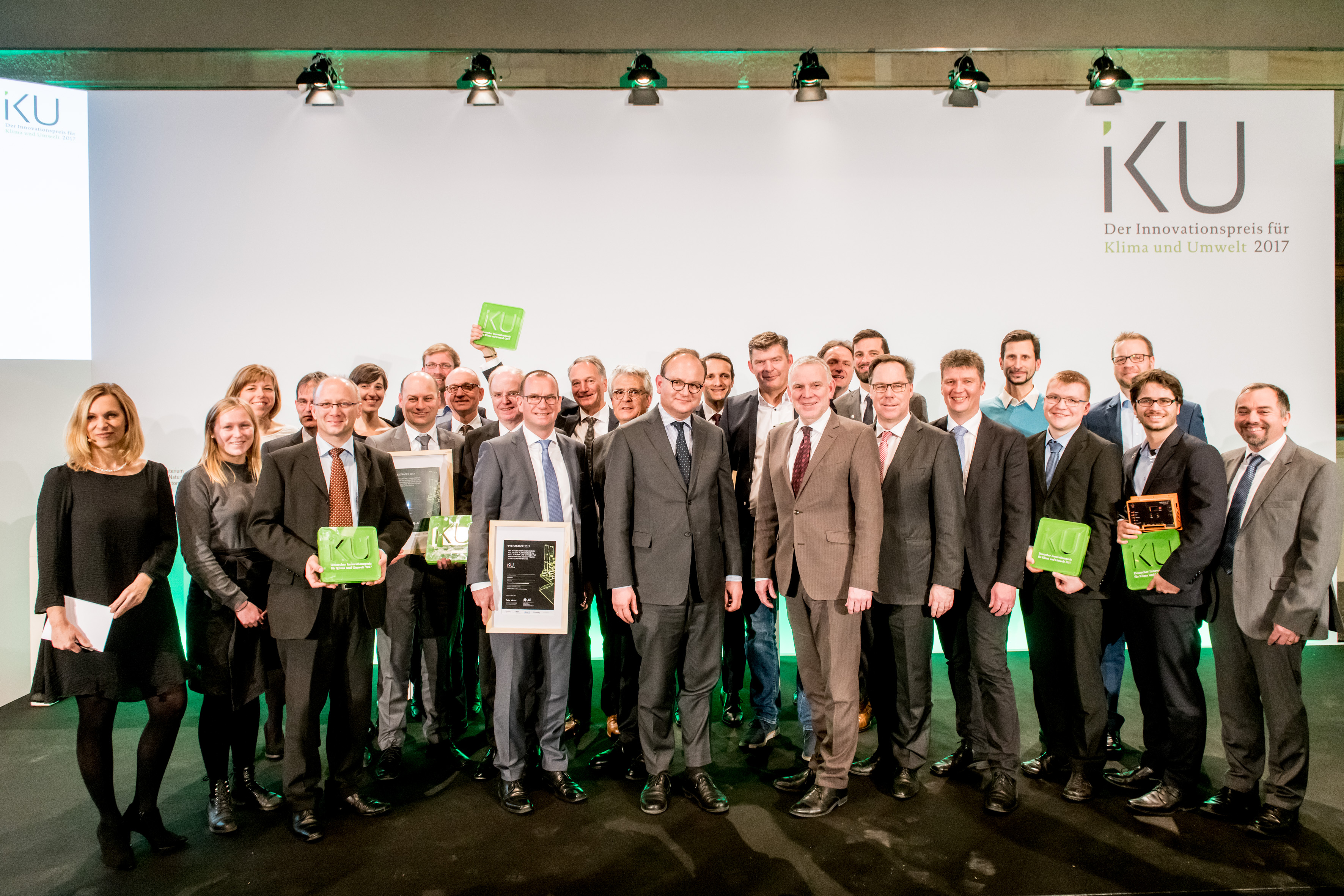 Das Bundesumweltministerium und der Bundesverband der Deutschen Industrie (BDI) haben am 21. Februar 2018 den Deutschen Innovationspreis für Klima und Umwelt (IKU) an sieben Preisträger verliehen. Mit dem IKU werden seit 2009 herausragende Umweltinnovationen von deutschen Unternehmen und Forschungseinrichtungen prämiert. Umweltstaatssekretär Jochen Flasbarth und Holger Lösch, Stellvertretender BDI-Hauptgeschäftsführer, zeichneten sechs Preisträger in fünf Kategorien aus. Mit einem Sonderpreis „Innovation und biologische Vielfalt" würdigten sie ein weiteres Projekt. Die wissenschaftliche Bewertung der eingereichten Innovationen wurde vom Fraunhofer ISI durchgeführt.