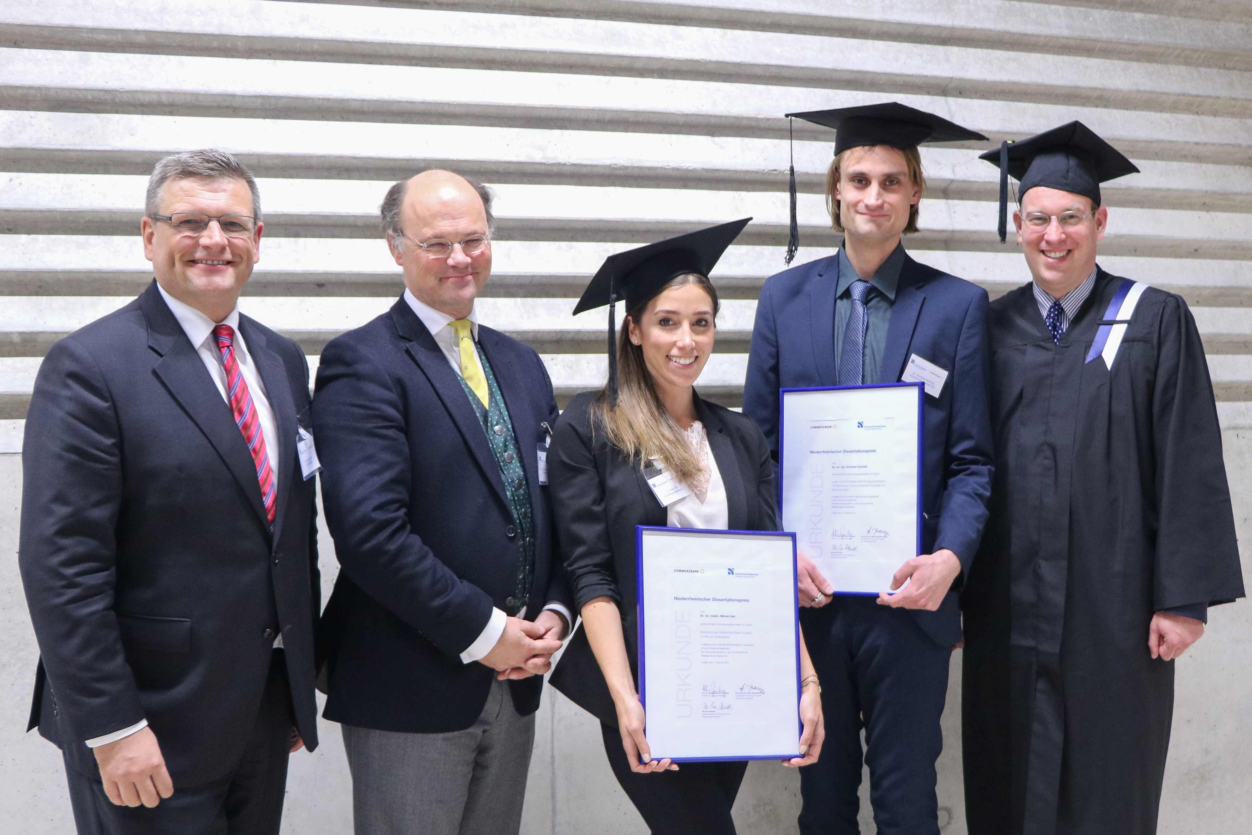 „Wir freuen uns, zum nunmehr fünften Mal den niederrheinischen Dissertationspreis vergeben zu dürfen“, sagte Kai Uwe Schmidt, Niederlassungsleiter der Commerzbank Mittelstandsbank Niederrhein. „Es ist wichtig, junge Menschen in ihrer innovativen Arbeit zu unterstützen. Was gut ist für den Nachwuchs, ist gut für die Region“.