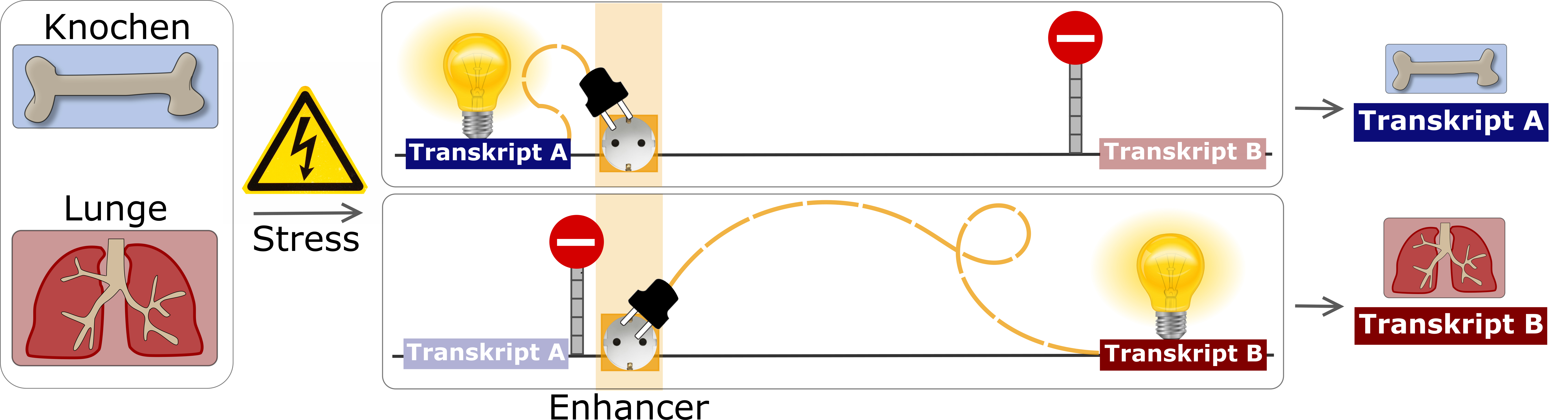 Die Freisetzung von Stresshormonen löst zahlreiche unterschiedliche Reaktionen im Organismus aus. Einige dieser Reaktionen werden durch sogenannte Enhancer reguliert. Dies sind regulatorische Regionen im Genom, die die Aktivität von Genen beeinflussen können. Wissenschaftlerinnen und Wissenschaftler am Berliner Max-Planck-Institut für molekulare Genetik (MPIMG) haben jetzt herausgefunden, dass ein einzelner Enhancer in verschiedenen Zelltypen unterschiedliche Stressreaktionen regulieren kann. Dies ist möglich, da der Enhancer in unterschiedlichen Zelltypen die Produktion von verschiedenen Gentranskripten reguliert und dadurch zelltypspezifische Reaktionen auf Stress ermöglicht.