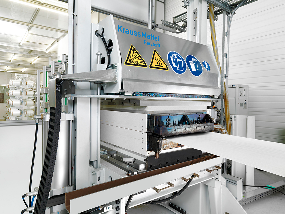 Auch Prof. Peter Michel, Leiter des Geschäftsfelds Polymeranwendungen am Fraunhofer IMWS, hebt die Flexibilität und Geschwindigkeit der neuen Anlage hervor: »Dank der engen Zusammenarbeit mit KraussMaffei Berstorff können wir unseren Kunden vielfältige Varianten der Herstellung von unidirektional verstärkten Thermoplasten ermöglichen. Durch die spezielle geometrische Gestaltung unseres Werkzeugs ist nicht nur eine hocheffiziente Imprägnierung der Fasern möglich, sondern wir erreichen auch anpassbare Tape-Dicken, Druckgradienten und Imprägnierlängen im Benetzungswerkzeug.«