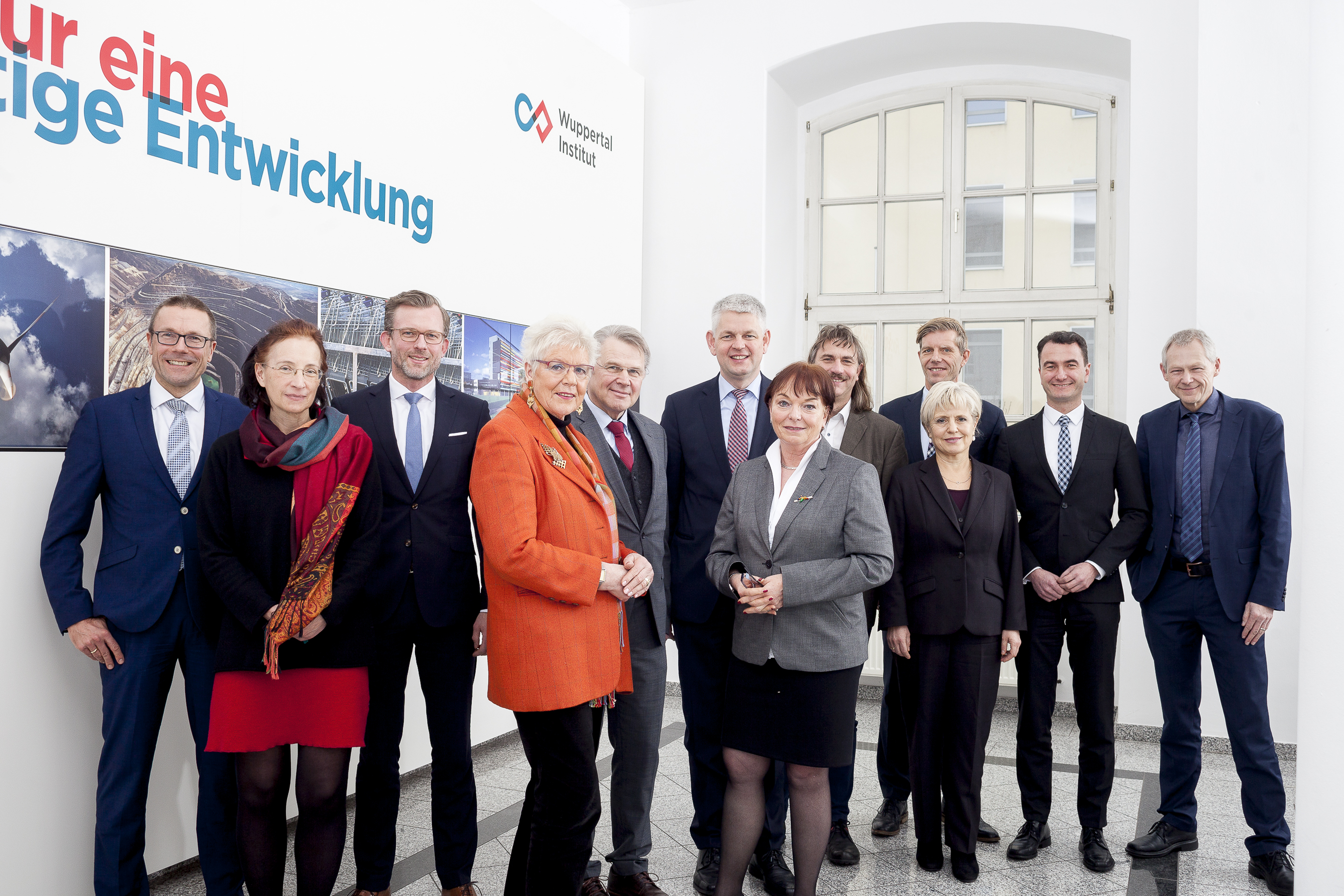 Prof. Dr. Uwe Schneidewind (Präsident des Wuppertal Instituts), Brigitte Lohaus (Ministerium der Finanzen NRW), Dr. Dirk Günnewig (Ministerium für Verkehr des Landes NRW), Prof. Dr. Lenelis Kruse-Graumann (Vorsitzende des Internationalen Wissenschaftlichen Beirats des Wuppertal Instituts), Dr. Heinrich Bottermann (Staatssekretär Ministerium für Umwelt, Landwirtschaft, Natur- und Verbraucherschutz des Landes NRW), Christoph Dammermann (Vorsitzender des Aufsichtsrates und Staatssekretär im Ministerium für Wirtschaft, Innovation, Digitalisierung und Energie des Landes NRW), Brigitte Mutert-Breidbach (kaufmännische Geschäftsführerin des Wuppertal Instituts), Josef Tumbrinck (NABU NRW), Dr. Ralf Mittelstädt (IHK NRW), Dr. Beate Wieland (Ministerium für Kultur und Wissenschaft des Landes NRW), Dr. Thomas Wilk (Ministerium für Heimat, Kommunales, Bau und Gleichstellung des Landes NRW) und Prof. Dr.-Ing. Manfred Fischedick (Vizepräsident des Wuppertal Instituts).