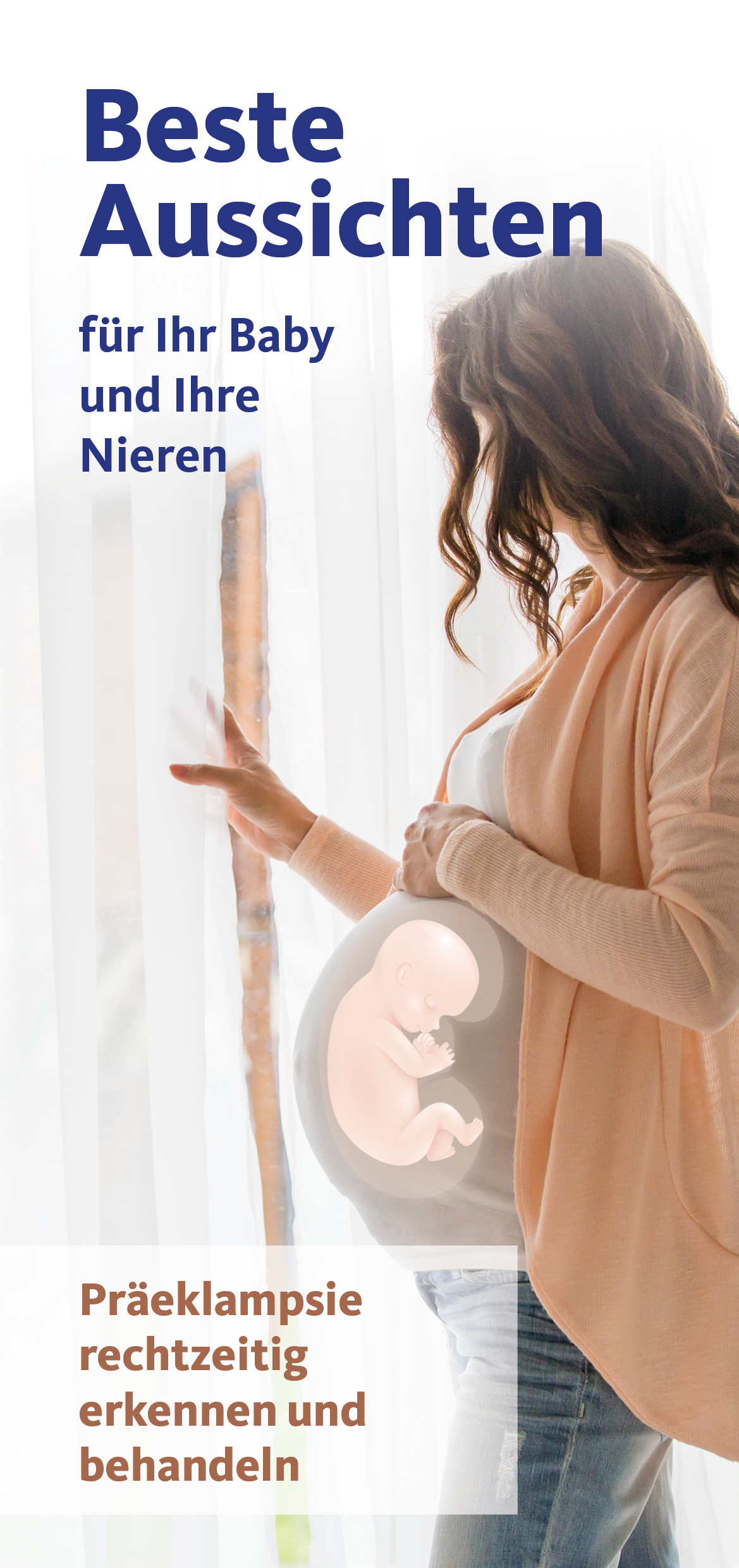 genannt. Erste Anzeichen sind Bluthochdruck und Eiweiß im Urin, die Erkrankung kann schwerwiegende Folgen für die Gesundheit von Mutter und Kind haben. Die Fachärzte für Nephrologie und Gynäkologie haben zum diesjährigen Weltnierentag den Informationsflyer „Beste Aussichten für Ihr Baby und Ihre Nieren“ entwickelt. Dieser informiert schwangere Frauen über das Krankheitsbild sowie über Therapie und Nachsorge. Der Informationsflyer wird ab Mitte März in gynäkologischen und nephrologischen Praxen und Abteilungen ausliegen.