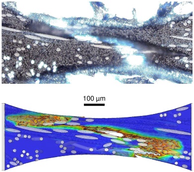 Das Fraunhofer IWM arbeitet auf dem Gebiet der mechanismenorientierten Materialcharakterisierung und Modellierung. Mit Hilfe einer Mikroprobenprüftechnik und begleitender numerischer Simulation lässt sich die Entstehung von Rissen auf der mikroskopischen Ebene beobachten und der numerischen Simulation zugänglich machen. Aufbauend auf den Ergebnissen dieser Untersuchungen entwickelt das Fraunhofer IWM makroskopische Materialmodelle, implementiert benutzerdefinierte Module in kommerziell verfügbare Finite-Elemente-Programme und macht diese so für die Bauteilberechnung verfügbar.
