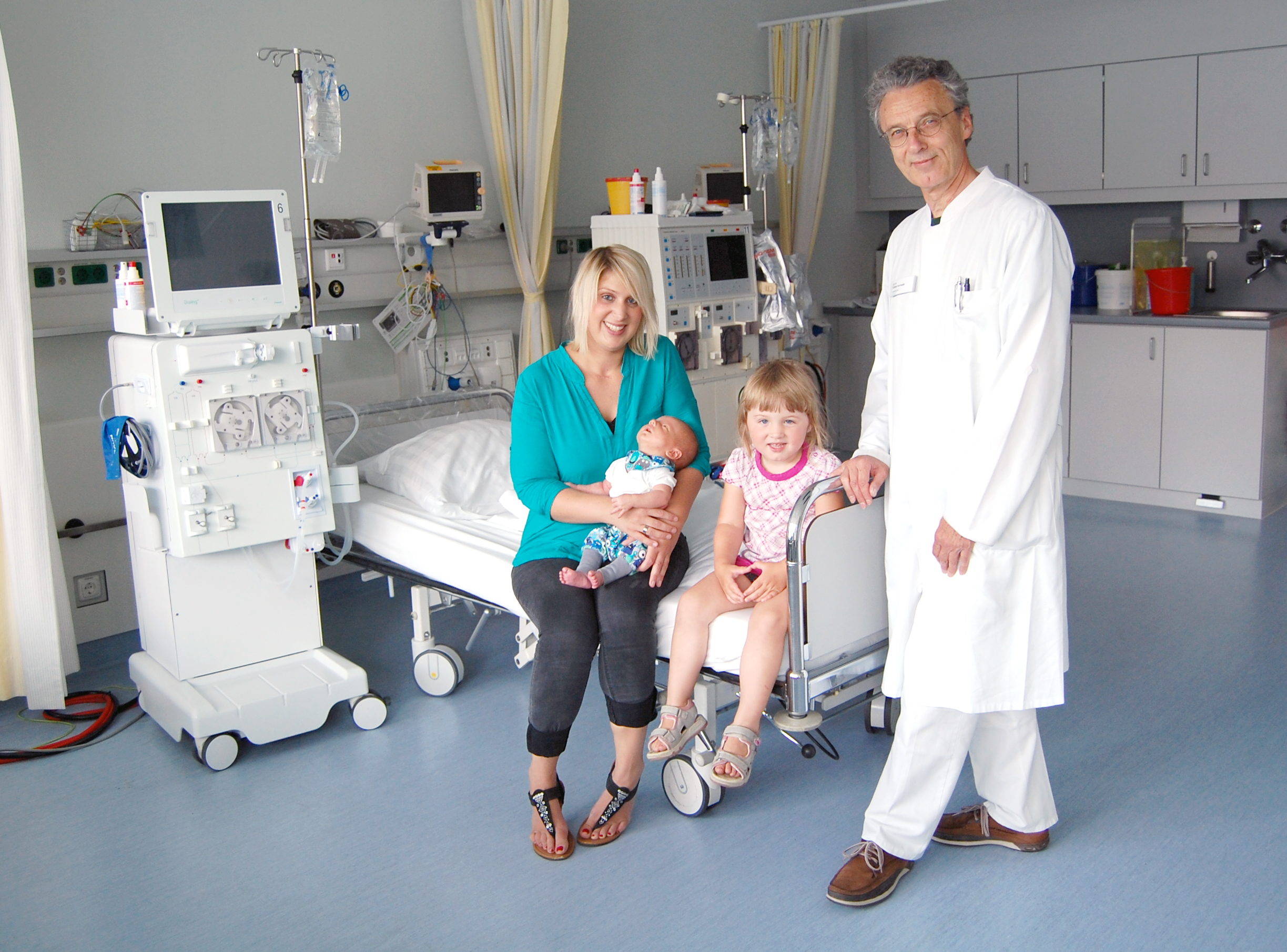 Dr. Lothar Kornalik: Die Geburt des ersten Kindes erfolgte durch einen Kaiserschnitt. Beim zweiten Kind war es eine eingeleitete Spontangeburt, das war schon eine Herausforderung für das Behandlungsteam. Die Patientin hatte zuvor einmal zu Hause und noch einmal in der Klinik dialysiert.