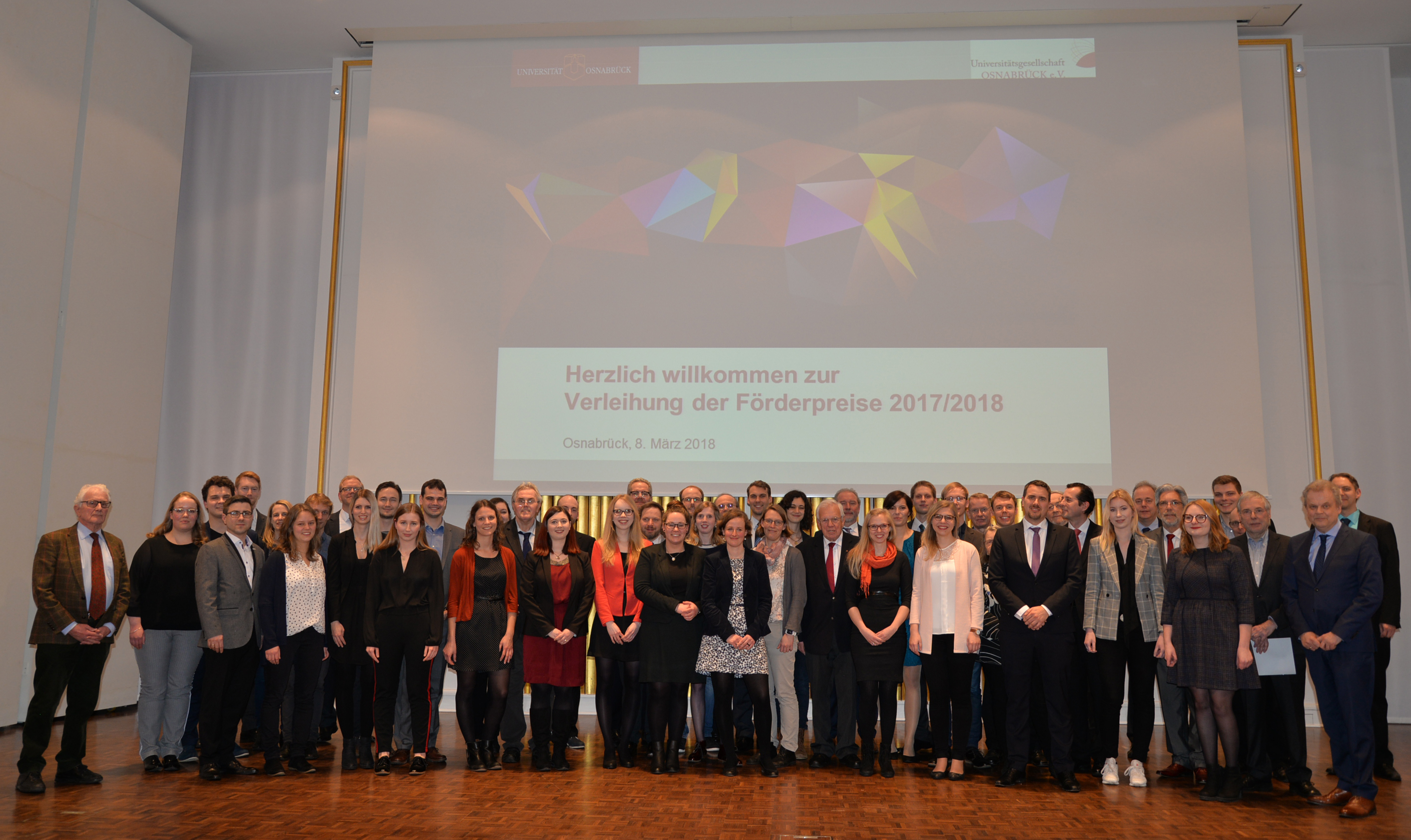 OSNABRÜCK.- Sie alle haben hervorragende Leistungen erbracht und besonderes Engagement bewiesen: 31 Studierende, Absolventinnen und Absolventen der Universität Osnabrück erhielten am Donnerstagabend (8. März) im Rahmen eines Festakts in der Schlossaula einen der begehrten Förderpreise. Die feierliche Verleihung der Preise im Gesamtwert von 22.000 Euro wurde gemeinsam von der Universität und der Universitätsgesellschaft Osnabrück e.V. vorgenommen.