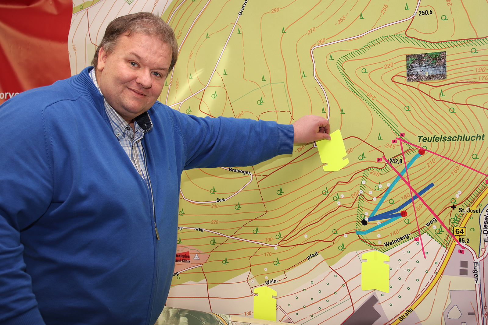 Dass die Mönche zuhause in Höxter, in den Südlagen des Weserberglands, ebenfalls Wein angebaut haben, lässt sich durch verschiedene Quellen nachweisen. Eine wissenschaftlich belastbare Aussage über die konkrete Lage des am Räuschenbergs vermuteten Weinbaugebiets ist jedoch bisher nicht vorhanden. An dieser arbeitet Ralf Pankoke nun: Für seine Untersuchungen ist er häufig „am Ort des Geschehens“, wie er erzählt. Am Räuschenberg – und damit in Sichtweite zum Kloster Corvey – findet er alte Mauerstrukturen und Gewölbe, Terrassen und unterschiedliche Vegetation. „Ich beobachte sehr viel im Gelände und versuche, Beziehungen herzustellen. Dazu führe ich beispielsweise Bodenuntersuchungen durch und gleiche Ergebnisse mit Archivmaterialien ab“, erklärt der Wissenschaftler. Ein erstes Ergebnis: „Die Terrassen auf dem Gelände sind künstlich angelegt und wurden landwirtschaftlich genutzt. Das resultiert aus meinen Untersuchungen aus Bodenkunde und Geoarchäologie und dem Studium von Karten, Bildern, Luftbildern und weiteren Quellen“, sagt Pankoke.