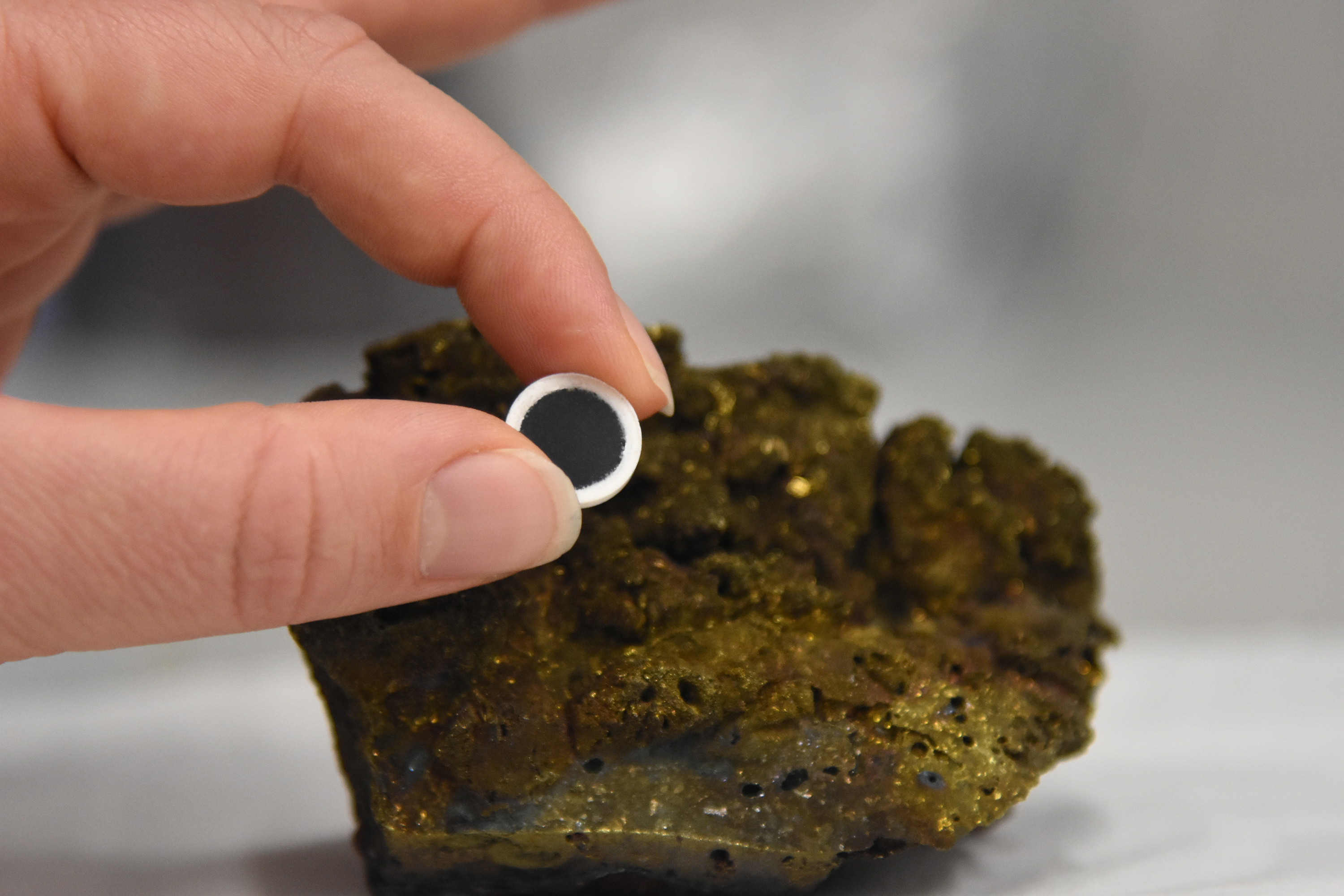 Caption: The team from Kiel University grinds up samples of rocks and other materials to nano-sized particles, such as iron ore shown here. Pressed into pellets, they can be used as reference materials for precise calibration of measuring devices.