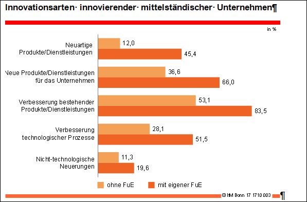 "Aktuell liegt der Fokus der innovationspolitischen Diskussion vorrangig auf forschungsintensiven Gütern und wissensintensiven Dienstleistungen. Schließlich führt intensive FuE zu deutlich höheren Wachstumsraten und -chancen, was sich wiederum auf die internationale Wettbewerbsfähigkeit Deutschlands auswirkt", berichtet Prof. Dr. Friederike Welter (IfM Bonn/Universität Siegen). "Mit eigener FuE sind jedoch immer erhebliche Risiken und Unsicherheiten verbunden, die eher von größeren Unternehmen getragen werden können. Für kleinere Unternehmen kann dagegen das Scheitern eines einzelnen FuE-basierten Innovationsprojektes zur Existenzgefährdung des gesamten Unter-nehmens führen. Aus diesem Grund gehen mittelständische Unternehmen, die keine eigene FuE-Abteilung unterhalten, beispielsweise Kooperationen mit Wirtschafts- und Wissenschaftspartnern ein."