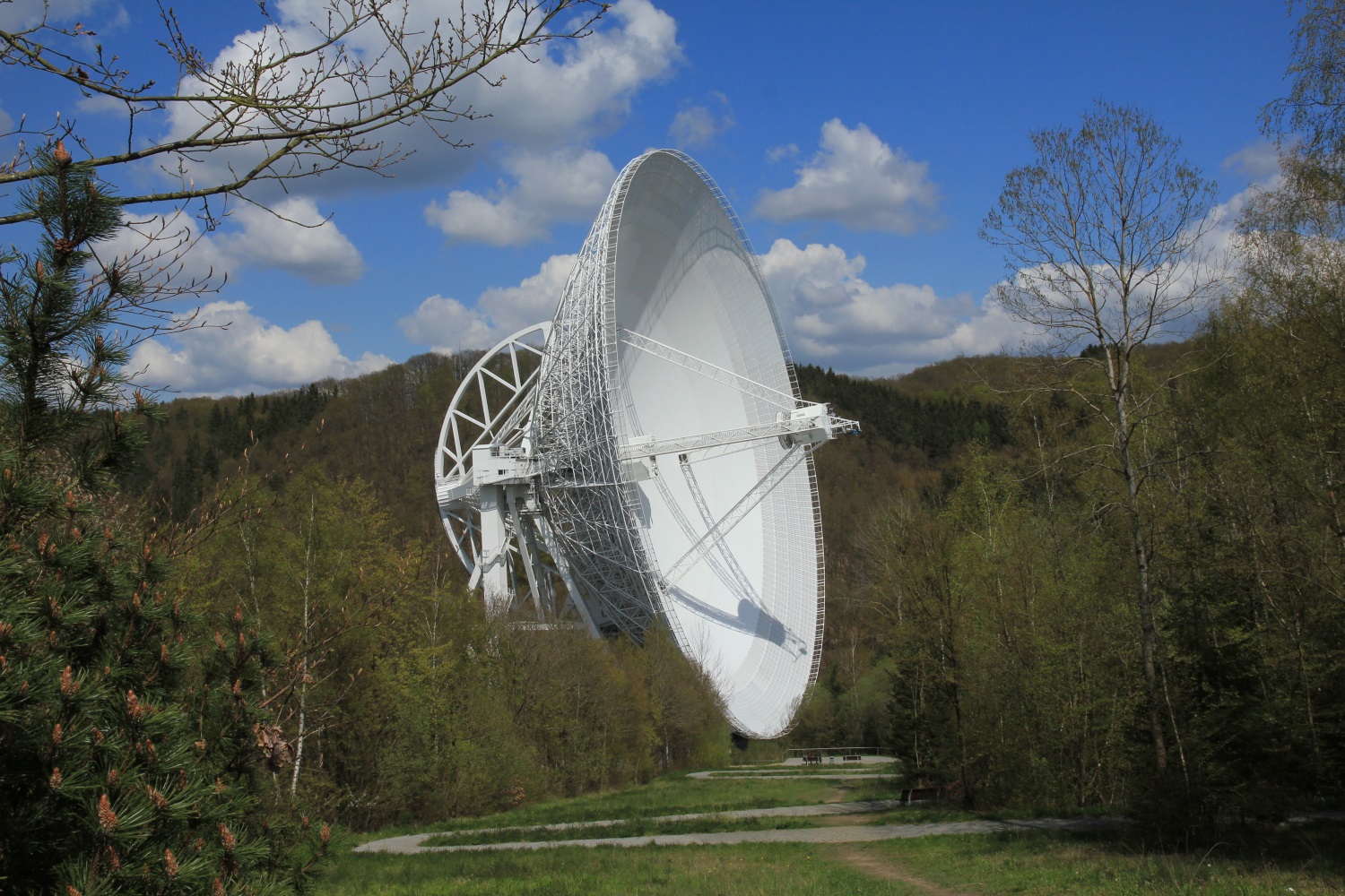 Neben den Themenvorträgen in Bad Münstereifel finden ab 1. April auch wiederum Vorträge für im Besucherpavillon direkt in Sichtweite des 100-m-Radioteleskops statt. Sie werden von dienstags bis samstags für Besuchergruppen ab ca. 10 Personen durchgeführt (Anmeldung unter 02257-301101, Mo-Fr vormittags). Vom Besucherpavillon aus führt ein Zugangsweg zum Aussichtsplateau unmittelbar vor dem großen Teleskopspiegel von 100 Metern Durchmesser sowie über einen kurzen Waldpfad bis zum zweiten Radioteleskop vor Ort, der Effelsberg-Station des europäischen LOFAR-Teleskopnetzwerks.