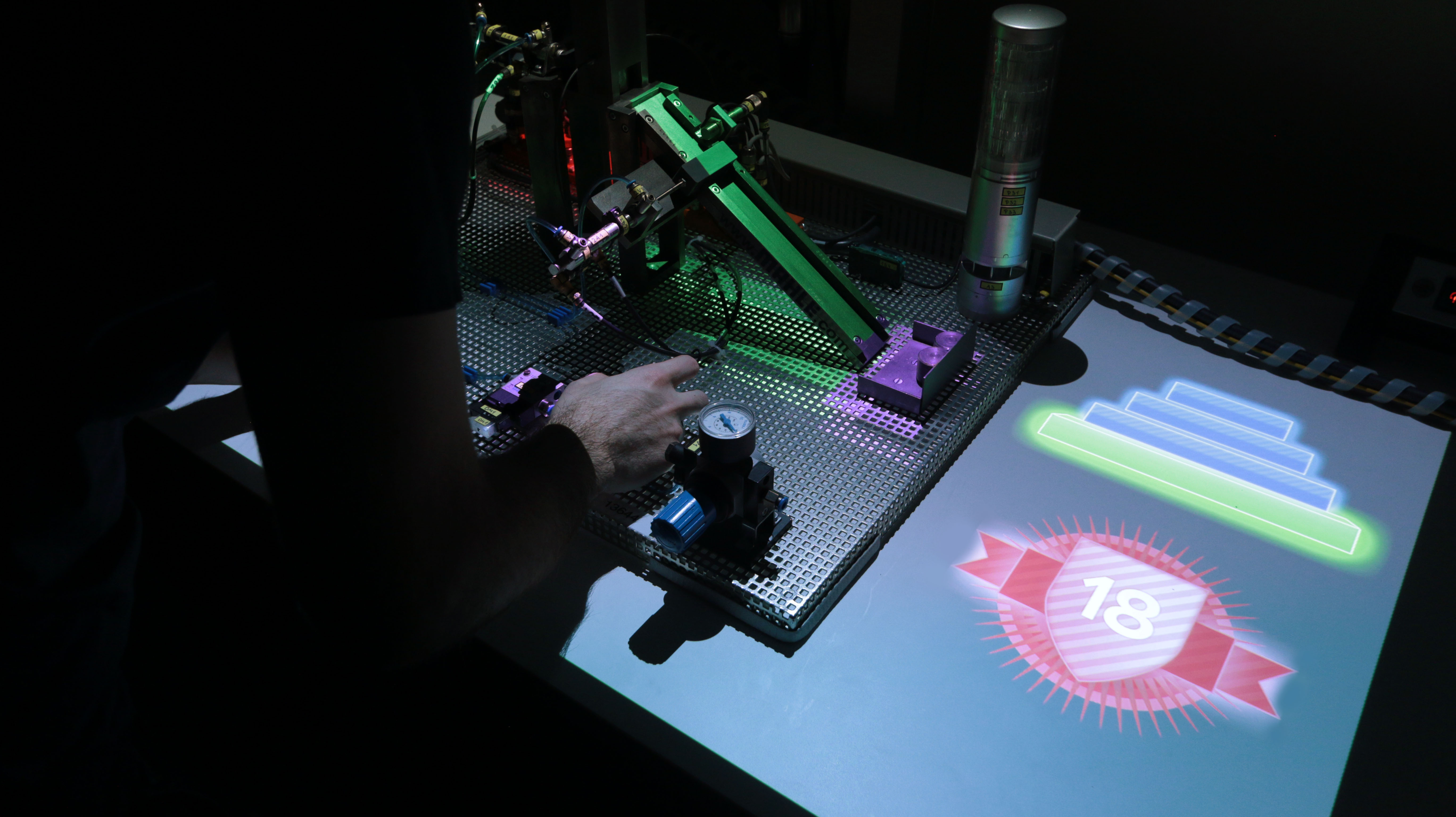 So könne am Arbeitsplatz der Teilnehmenden etwa ein projiziertes Video den Ablauf eines Montagevorgangs im Detail zeigen. Mit Hilfe von Lichtprojektionen sei es beispielsweise möglich, die exakte Stelle eines Werkstücks hervorzuheben, an die das nächste Teil montiert werden soll. Ebenso sei eine zusätzliche auditive Unterstützung denkbar. Um Montagevorgänge zu erlernen oder selbstständig durchzuführen werde auch ein haptisches Gerät entwickelt, das die Hand eines Nutzers leiten und damit das Erlernen der Bewegung ansprechen soll. Fünf Grundfertigkeiten sollen geübt werden: Montieren/Fügen, Greifen/Platzieren, Messen/Inspizieren, Einstellen und Hilfsfunktionen.