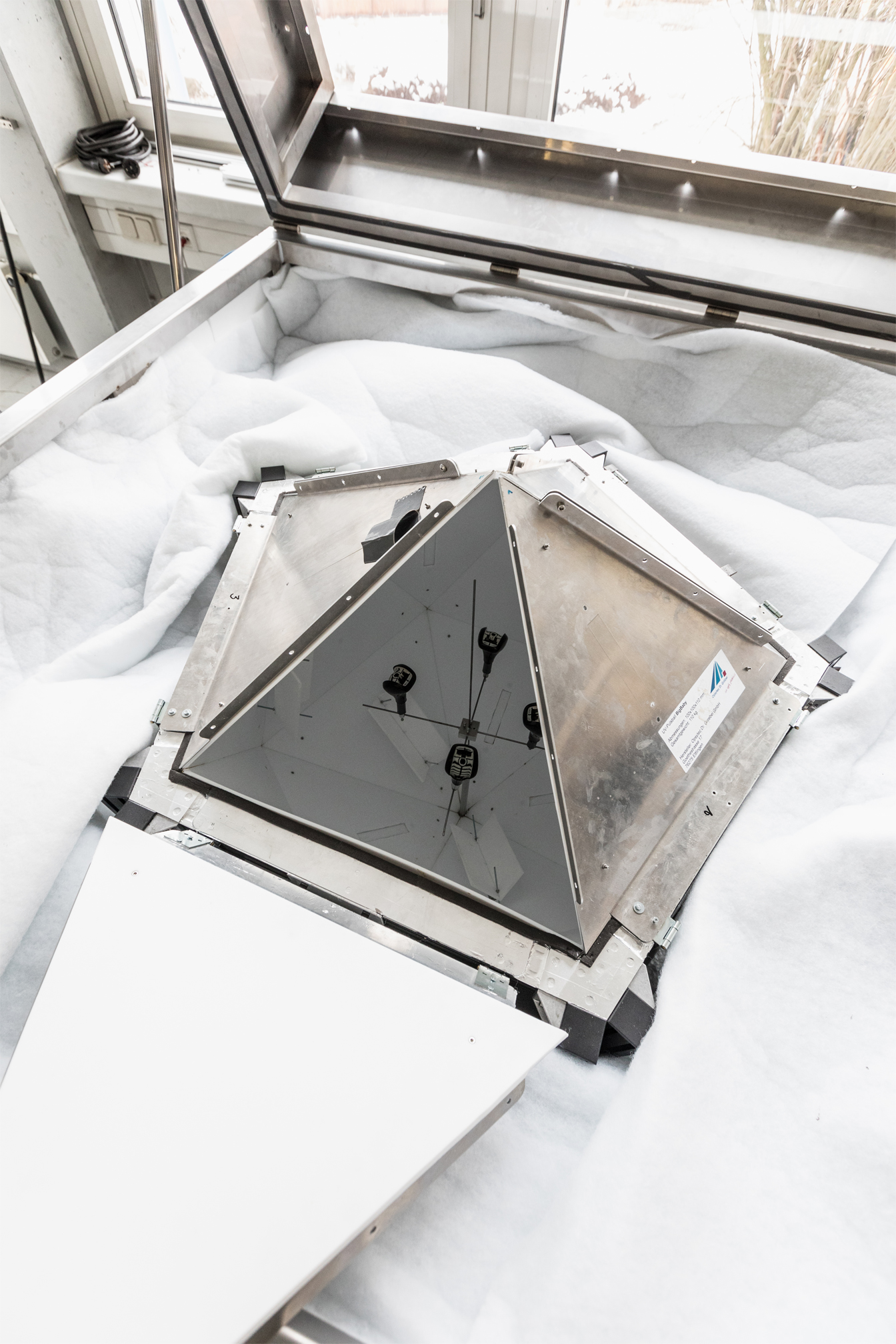 Die Ingenieure verwenden keine exakte Kugel, sondern eine angenäherte Kugelform aus 20 ebenen Dreiecken, was leichter herzustellen ist. Die Innenoberfläche besteht aus Teflon, das mehr als 80 Prozent der Strahlung reflektiert und obendrein schmutzabweisend und UV-beständig ist. Als UV-Lichtquellen dienen keine konventionellen Quecksilberdampflampen, sondern neuartige Hochleistungs- LED-Strahler, die wenig Energie verbrauchen, kurze Anlaufzeiten haben, schnell schaltbar sind und lange halten. »Die UV-LED-Lampen haben besonders vorteilhafte Eigenschaften, um sie in die UV-Kugel zu integrieren. Die geringen mechanischen Baumaße, die hohe optische Leistungsdichte und schnelle Taktbarkeit machen sie zur idealen Strahlungsquelle für diese Anwendung«, bestätigt Alfred Feilen, der Geschäftsführer von Easytec.
