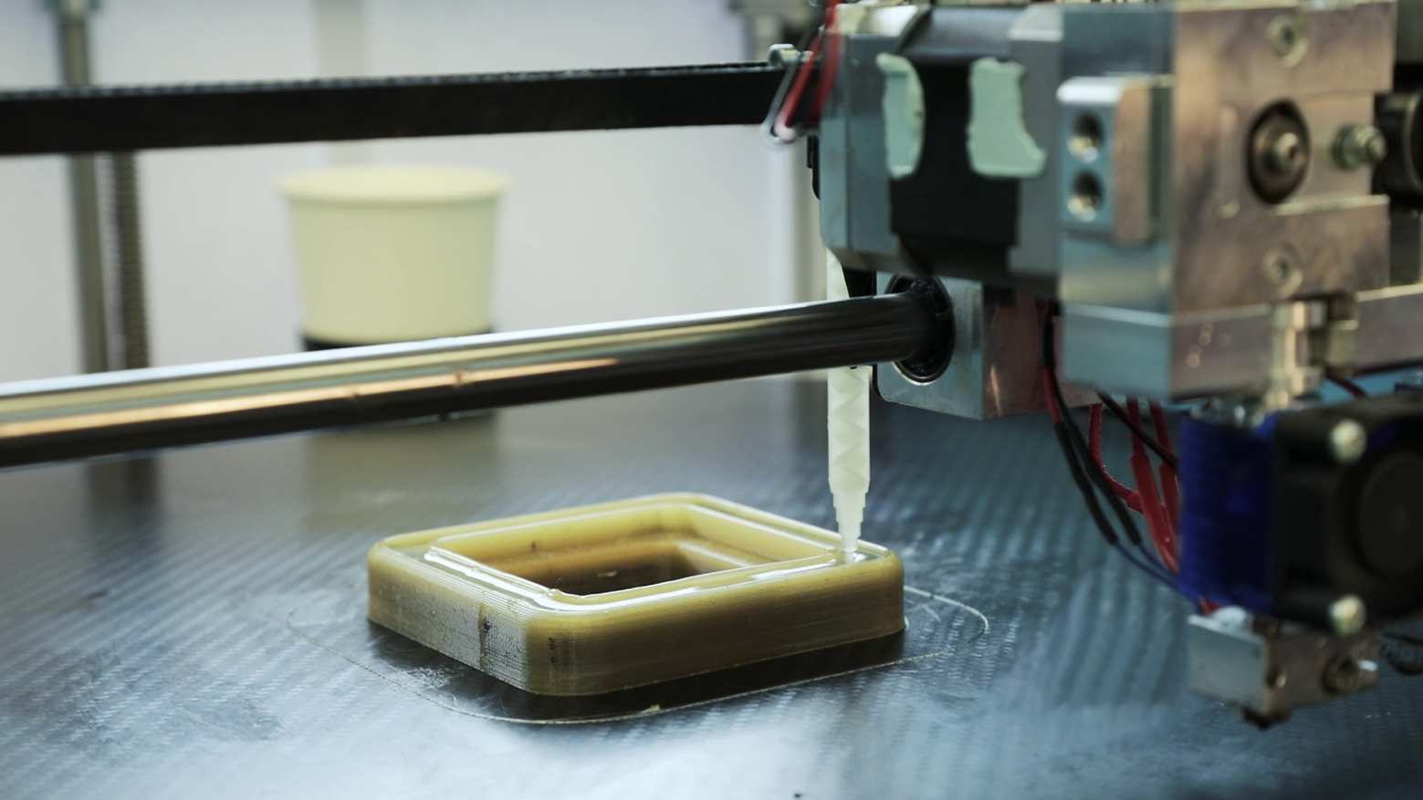 Wissenschaftler des Fraunhofer IPA haben ein neues Verfahren entwickelt, das die Vorzüge von 3D-Druck und Spritzguss vereint. Beim additiven Freiformgießen wird erst die Hülle des Bauteils mit FLM-Druck hergestellt und anschließend mit einem Zwei-Komponenten-Harz befüllt. Das spart Zeit, steigert die Stabilität des Bauteils und ermöglicht es, neue Materialien zu verdrucken.