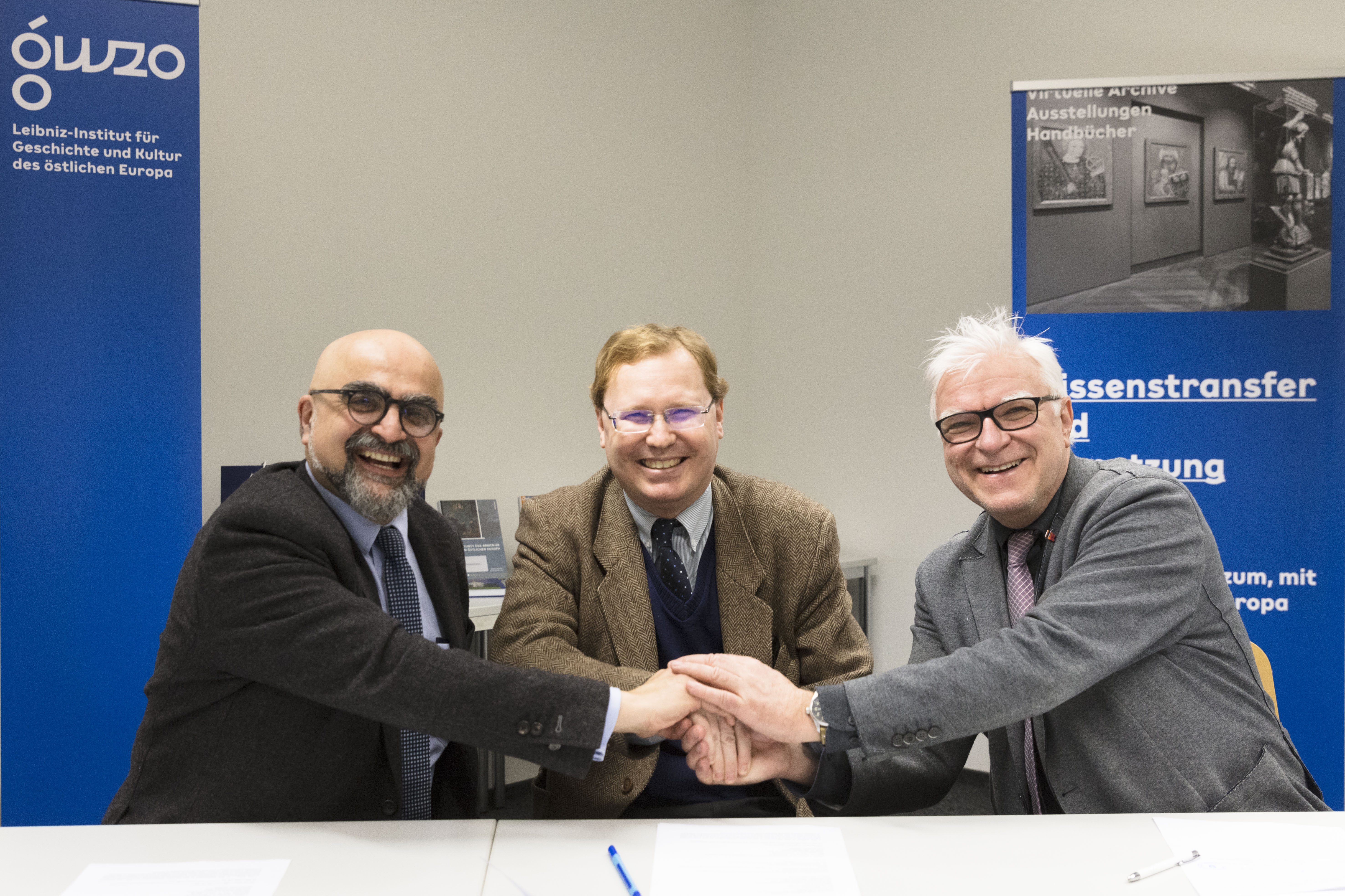 Schwerpunkt der Zusammenarbeit ist die Untersuchung der Geschichte und Kultur der Armenier in der Osthälfte Europas, die bislang kaum Gegenstand internationaler Forschung sind. Die Vertrags-partner wollen künftig Hand in Hand Forschungs- und Bildungsprojekte zur Thematik entwickeln. Ge-plant sind zudem gemeinsame Publikationen und Veranstaltungen. So soll im kommenden Jahr etwa erstmalig eine internationale Sommerschule für Studierende ausgerichtet werden. „Mittelfristig wollen wir weitere Partner wie beispielsweise die Jagiellonen-Universität in Krakau oder die Staatliche Uni-versität Jerewan in die Kooperation mit einbeziehen“, sagt Prof. Dr. Stefan Troebst, Initiator der trila-teralen Zusammenarbeit und Stellvertretender Direktor des GWZO.