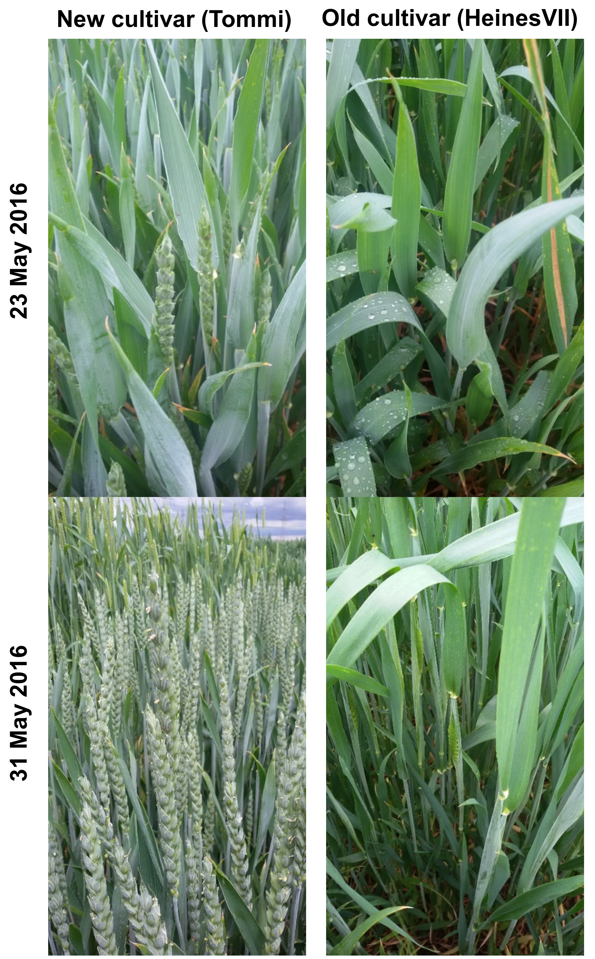 „Wir konnten zeigen, dass die Einflüsse von Klimawandel und von Sortenveränderungen durch Züchtung auf den Blühzeitpunkt in dem betrachteten Zeitraum etwa gleich groß sind und in dieselbe Richtung wirken“, so der Erstautor der Studie Dr. Ehsan Eyshi Rezaei vom Department für Nutzpflanzenwissenschaften, Abteilung Pflanzenbau. „Denn die jüngeren Sorten benötigen im Zeitraum zwischen Feldaufgang und Blüte 14 bis 18 Prozent weniger Wärmesumme als Sorten aus den 1950-er und 1960-er Jahren.“ Deutliche Effekte einer früheren oder späteren Aussaat auf den Blühzeitpunkt konnten dagegen nicht nachgewiesen werden. „Wir schließen daraus, dass bislang die Effekte der Erderwärmung auf den Winterweizen überschätzt werden“, ergänzt Prof. Dr. Stefan Siebert, der die Abteilung Pflanzenbau leitet. „Zukünftige Studien und Projektionen des Einflusses des Klimawandels sollten daher die Weiterentwicklung der Sorten berücksichtigen.“