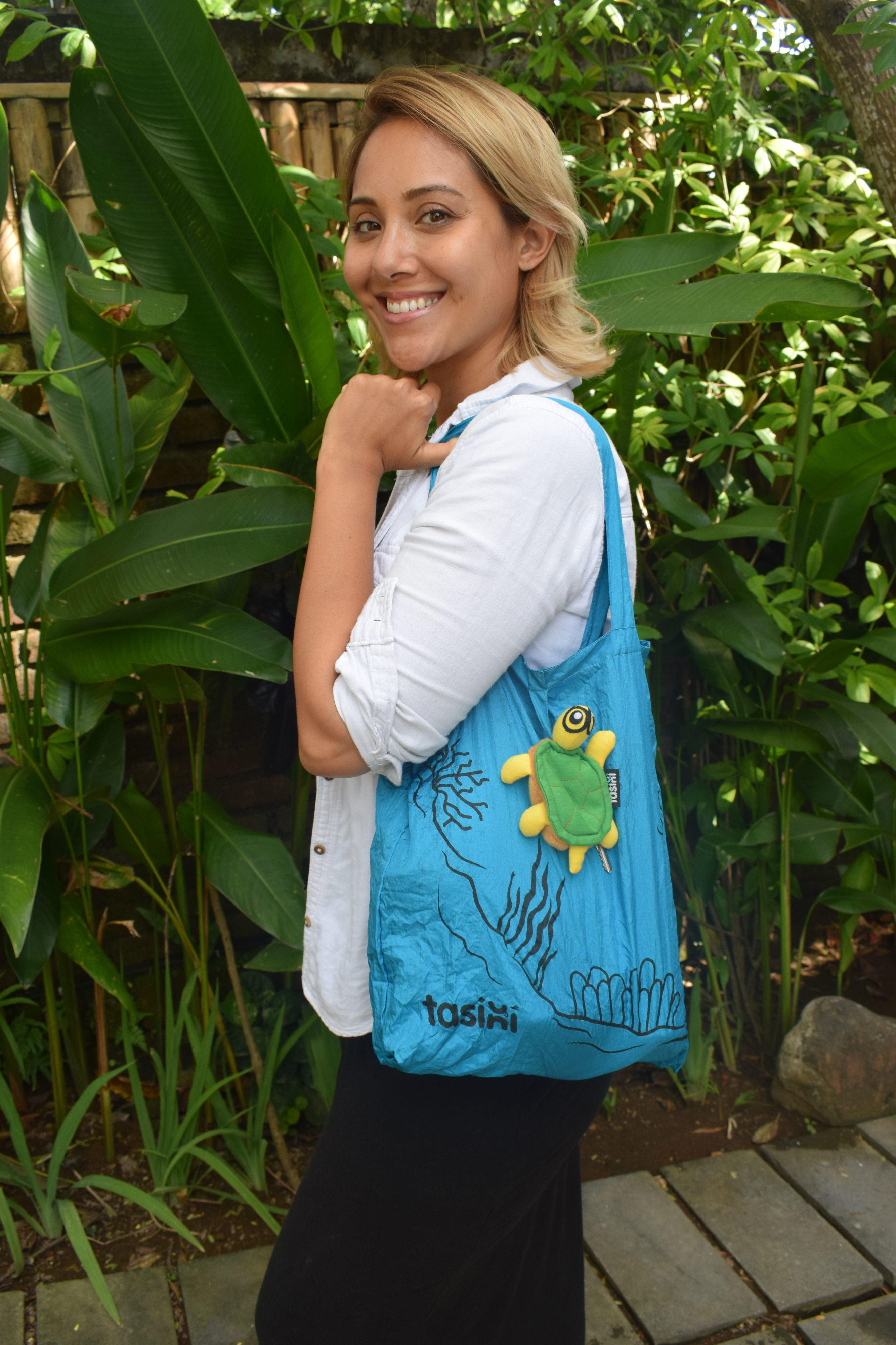 Spranz and his colleagues came up with the idea of "Tasini", reusable shopping bags made from recycled plastic waste and designed in the shape of sea animals. The little turtles, octopus, sharks and rays are not only a fashion accessory but serve as environmental ambassadors raising awareness of the marine litter issue. The foldable bags can be attached to a key ring and replace up to 400 plastic bags a year – a fun way to protect the environment!
