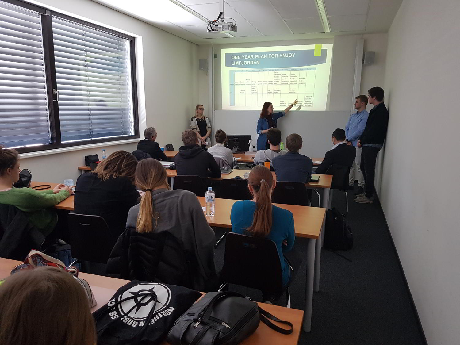 Knapp 20 Studierende steckten jeweils eine Woche in Dänemark und eine Woche in Deutschland die Köpfe zusammen und beschäftigten sich in gemischten Arbeitsgruppen mit der Frage, wie die Touristik-Website Enjoy Limfjorden deutsche Touristen anziehen kann. Limfjorden ist ein Gebiet im Nordosten Dänemarks, das mit einem hohen Erholungswert, unberührter Natur, vielen Möglichkeiten zum Wandern und Baden sowie mit Festivals und kulinarischen Besonderheiten lockt.