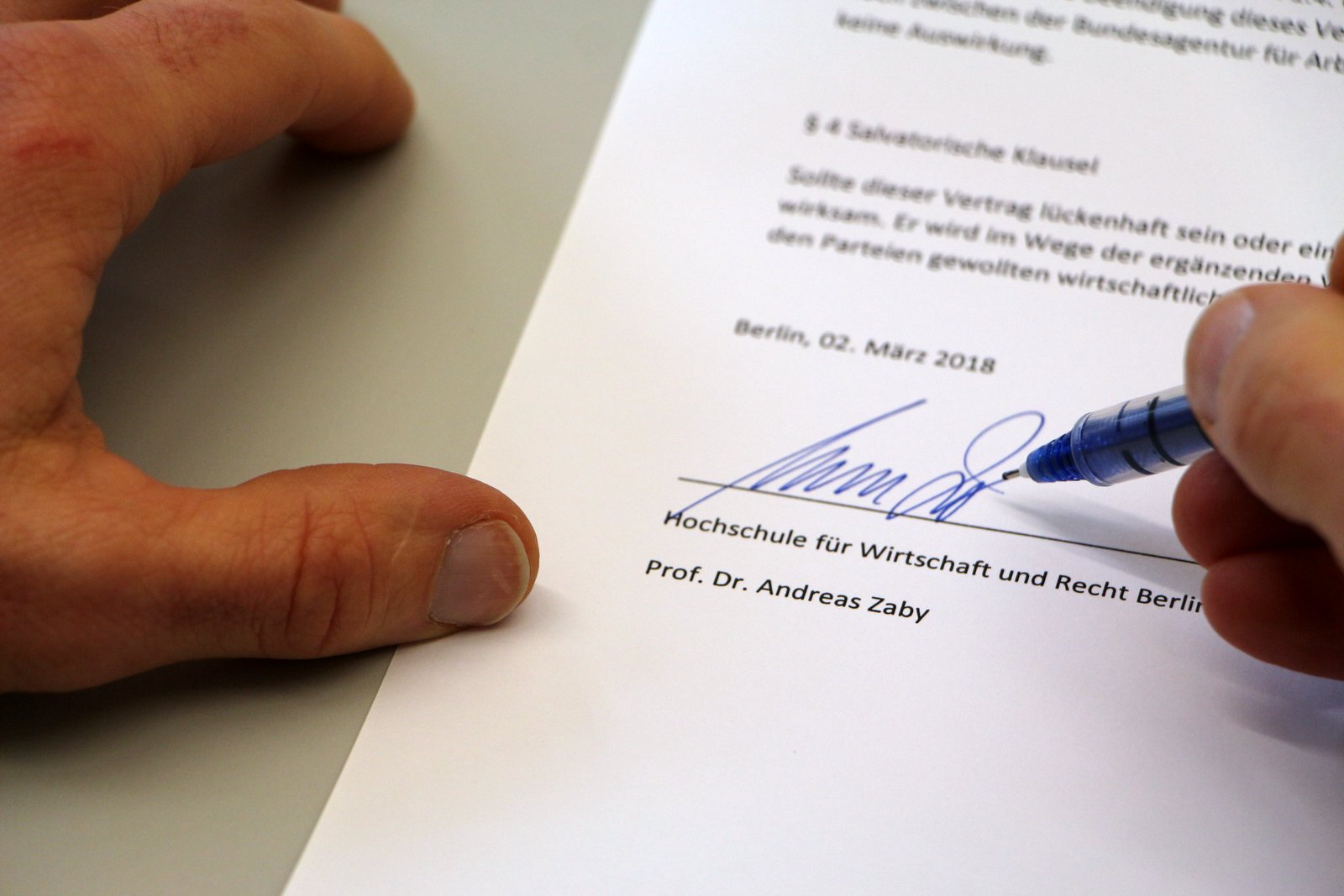 Um in Zeiten von Personalengpässen und Digitalisierung Fachkräftenachwuchs für die öffentliche Verwaltung zu sichern, haben die Bundesagentur für Arbeit (BA) und die Hochschule für Wirtschaft und Recht (HWR) Berlin einen Kooperationsvertrag geschlossen. Studierende des Bachelorstudiengangs Wirtschaftsrecht erhalten im Rahmen des neuen Förderstudiums finanzielle Unterstützung und absolvieren ihr Praxissemester in den Dienststellen der BA. Hinzu kommen vergütete kurze Zwischenpraktika während der vorlesungsfreien Zeit, die einen gezielten Einblick in die Aufgaben und Abläufe der Bundesbehörde ermöglichen.