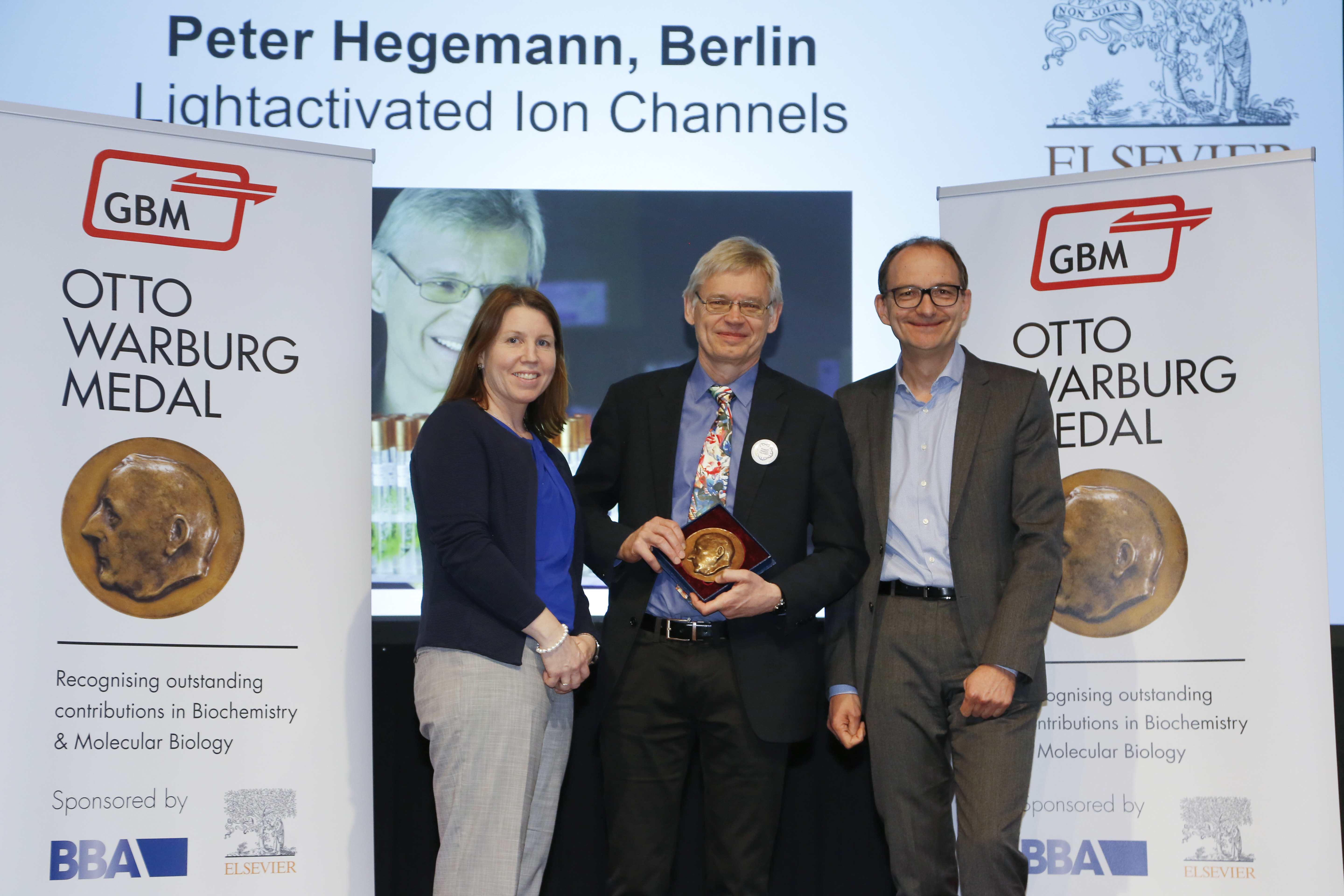 Prof. Dr. Peter Hegemann von der Humboldt-Universität zu Berlin wurde am 23. März mit der Otto-Warburg-Medaille 2018 ausgezeichnet. Die Gesellschaft für Biochemie und Molekularbiologie (GBM e.V.) sowie ihre Kooperationspartner, Elsevier und Biochimica et Biophysica Acta (BBA), ehrten den Professor für Experimentelle Biophysik für seine bahnbrechende Forschung auf dem Gebiet der lichtinduzierten Ionenkanäle.