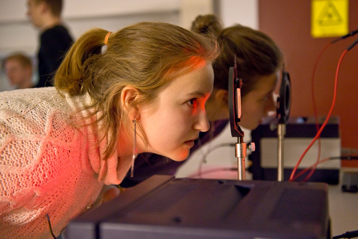 Licht lässt sich bündeln und fokussieren. Wie funktioniert das? Und was haben optische Linsen damit zu tun? Um diese Fragen geht es im Physik-Workshop. Nach einer kurzen Einführung können die Schülerinnen und Schüler ein Teleskop und Mikroskop zusammenbauen und anschließend eines der Labore der Jacobs University erkunden. Dort werden fortgeschrittene Mikroskopie-Techniken wie Elektronenmikroskop oder Rasterkraftmikroskop in der täglichen Forschungsarbeit verwendet.