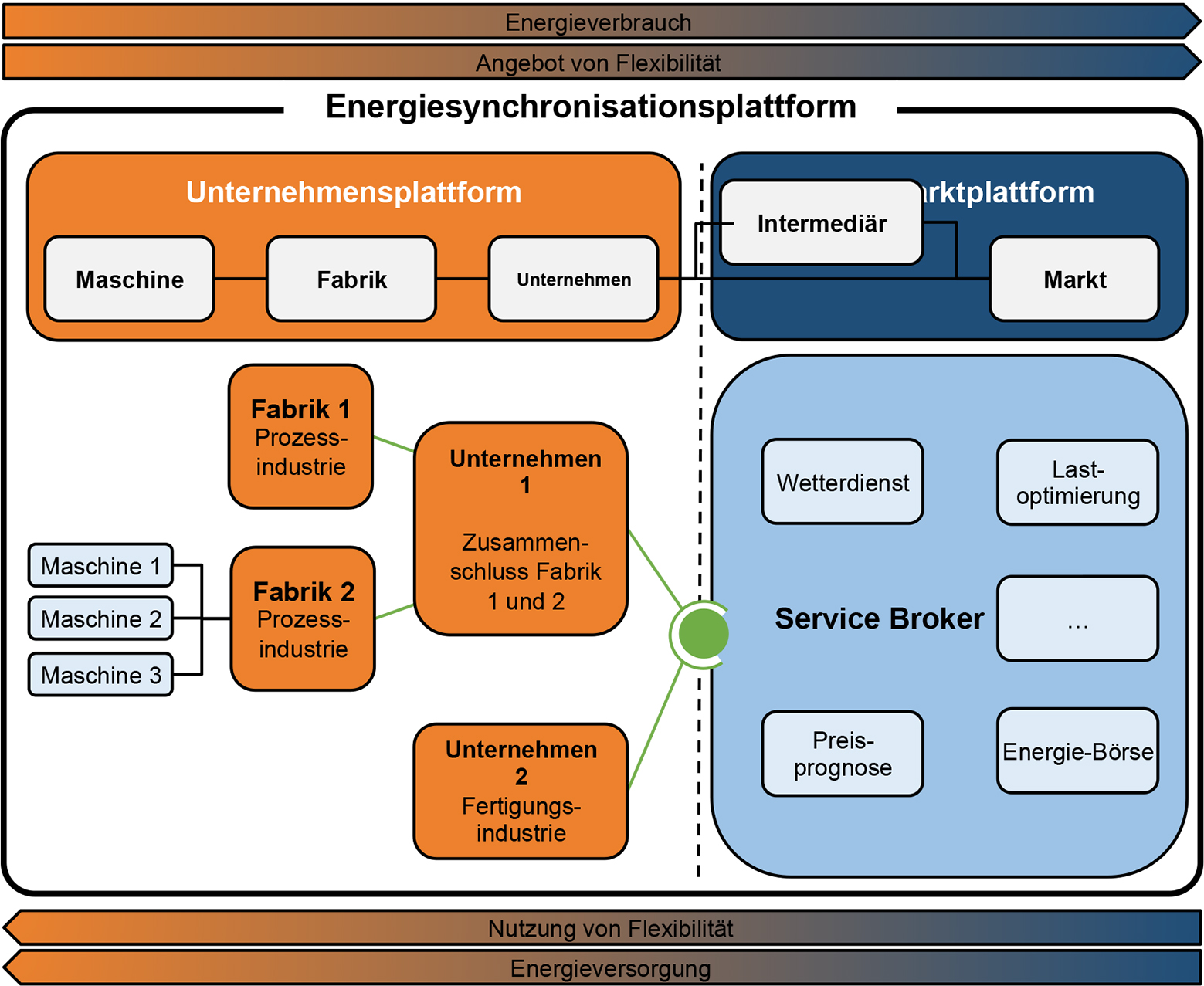 Um die flexibilisierten Prozesse zu vernetzen und zu digitalisieren, werden Konzepte für die Informations- und Telekommunikation (IKT) benötigt. Die IPA-Experten arbeiten im Projekt an einer IT-Plattform, die Unternehmen und Energielieferanten zusammenbringt. Als Basis dient die am IPA entwickelte Cloud-Plattform Virtual Fort Knox. »Eine Grundvoraussetzung ist, alle Bestandteile der Energieversorgungskette an die Plattform anzubinden und einen durchgängigen Informationsfluss zu gewährleisten – vom Windpark bis zur Maschine in der Produktionslinie«, erklärt IPA-Forscher Dennis Bauer, der in diesem Projektcluster mitwirkt. Digitale Services, die auf der Plattform laufen, greifen auf die Daten zu und bestimmen den bedarfsgerechten Einsatz verschiedener Flexibilitätsoptionen, welche aktuell zur Verfügung stehen. Hierfür wurde gemeinsam mit Partnern ein durchgängiges Datenmodell entwickelt, das alle Schritte von der Erfassung über die Optimierung bis zur Vermarktung der Energieflexibilität mit digitalen Services beinhaltet.