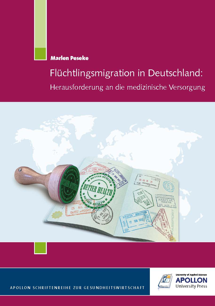 „Flüchtlingsmigration in Deutschland: Herausforderung an die medizinische Versorgung“ von Marlen Peseke, 1. Auflage, Bremen: APOLLON University Press, 2018, Band 12 APOLLON Schriftenreihe zur Gesundheitswirtschaft, 168 Seiten, broschiert, 24,90 €, ISBN 978-3-943001-33-4