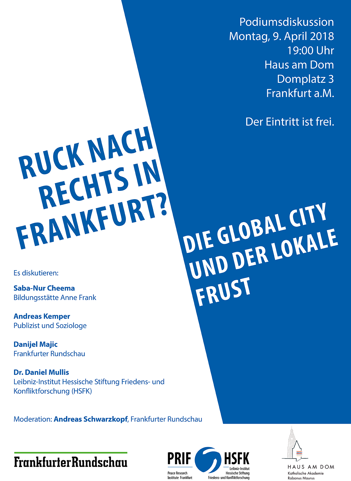 Podiumsdiskussion am Montag, 9.April um 19 Uhr in Frankfurt im Haus am Dom in Kooperation mit der Frankfurter Rundschau. Mit Andreas Kemper, Saba-Nur Cheema, Danijel Majic und Daniel Mullis, Moderation: Andreas Schwarzkopf (Frankfurter Rundschau)