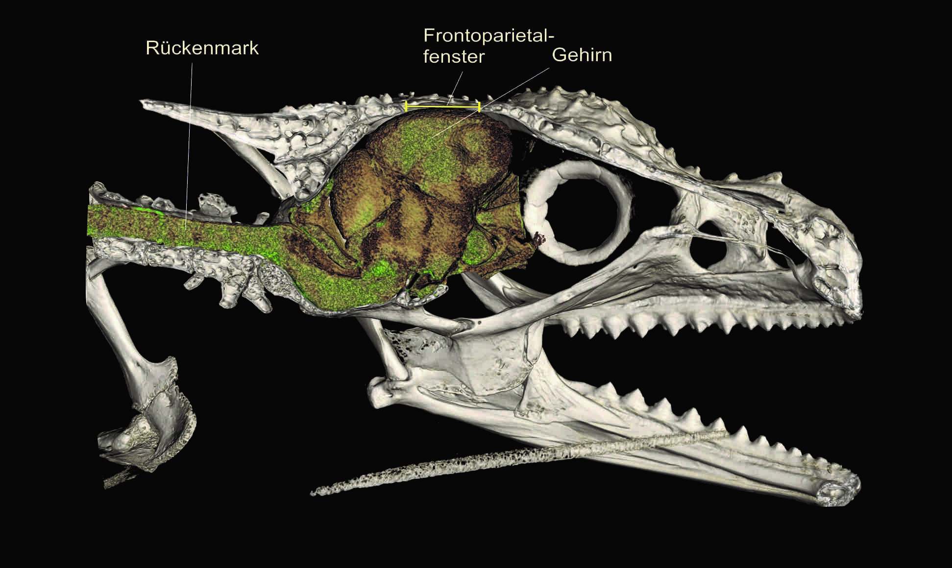 Nur ein einzelnes Männchen wurde von der dritten neuen Art, Calumma lefona, entdeckt. Bei röntgentomografischen Untersuchungen (Mikro-CT-Scans) fiel den Forschern ein großes Loch im Schädeldach auf, das ausgerechnet direkt über dem Gehirn liegt. Ein solches Schädelloch zeigte sich nicht nur bei dieser neuen Spezies, sondern auch bei sechs weiteren Calumma-Arten, die alle in den Bergen in Höhen von mindestens 1000 m über dem Meeresspiegel leben. Der biologische Sinn dieser Schädelfenster ist noch ein Rätsel, vielleicht helfen sie den Chamäleons bei der Thermoregulation.