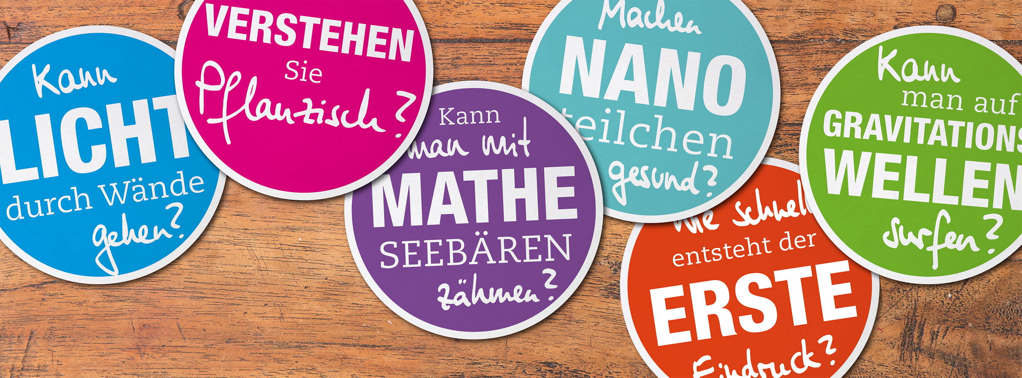 Neben naturwissenschaftlichen Fragen wie: Verstehen Sie Pflanzisch? Kann man mit Mathe Seebären zähmen? Machen Nanoteilchen gesund? Kann man auf Gravitationswellen surfen? werden auch dieses Jahr wieder Themen aus dem geistes- und sozialwissenschaftlichen Bereich für Laien verständlich erörtert, etwa wie viel echtes Mittelalter wirklich in der Serie „Game of Thrones“ steckt und wie schnell der erste Eindruck entsteht.