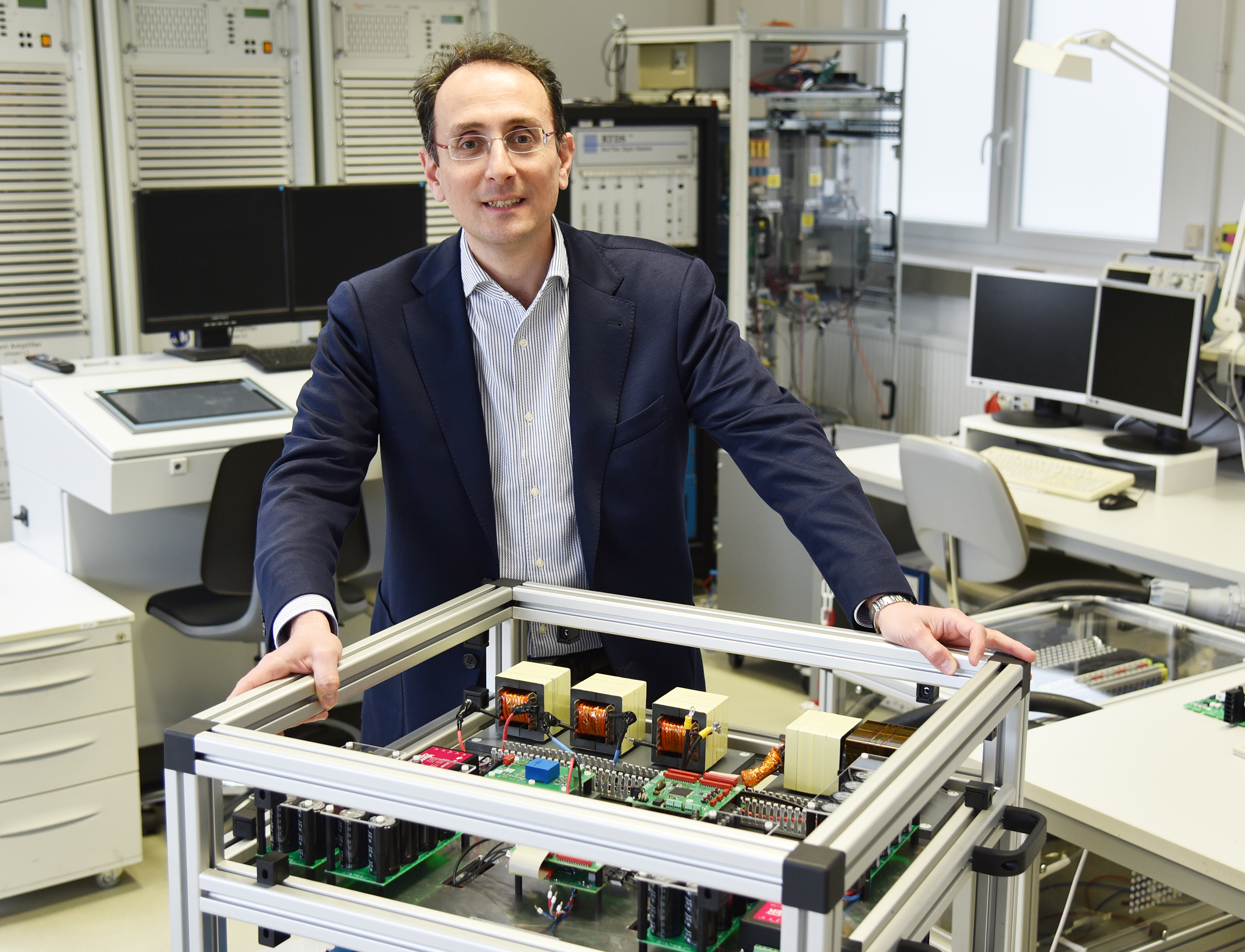 Bildunterschrift: Ein Forschungsteam um Marco Liserre, Professor für Leistungselektronik, hat den Prototyp eines intelligenten Transformators entwickelt, der den Stromfluss steuert.