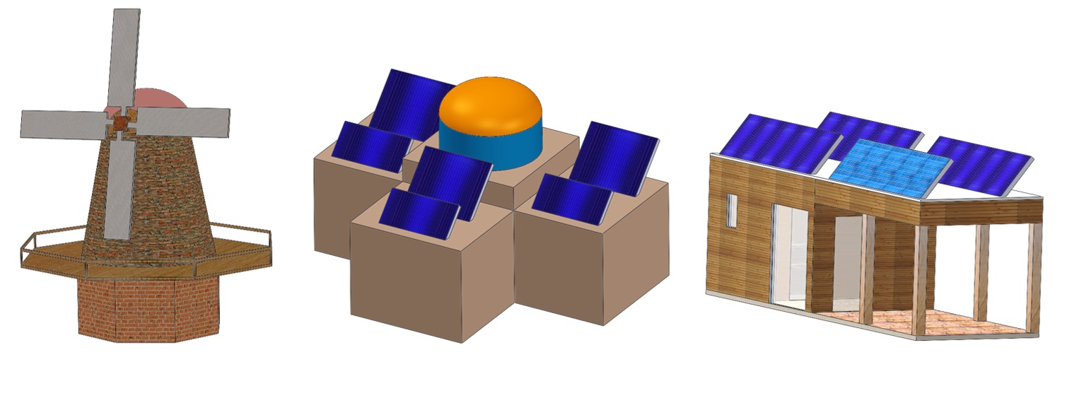 Das Konzept für die finnische Sauna baut auf einer klassischen Windmühle auf. Es beinhaltet die Ankopplung an eine Kleinwindanlage und die Integration eines innovativen Energiespeicher- und Wandlersystems. Das Energiespeicher- und Wandlersystem umfasst einen mechanischen und thermischen Energiespeicher sowie einen elektrischen Generator und eine Wärmekraftmaschine. Das Konzept für das Hamam sieht entsprechend eine Versorgung durch Sonnenenergie vor. Seine Innovation besteht in der direkten Erzeugung von Dampf. Die Energiespeicherung erfolgt mittels sogenannter Latentwärmespeicher (PCM-Speicher), deren Material bei der Aufnahme der Wärme schmilzt und sich bei der Abgabe wieder verfestigt (ähnlich den bekannten Taschenwärmern). Da traditionelle Hamams bisher meist mit Holz befeuert werden – alleine in Marokko werden dafür alljährlich rund 5.000 Hektar Wald gefällt – erhoffen sich die Wissenschaftler neben der Reduktion von Treibhausgasemissionen auch einen nachhaltigen Schutz der Umwelt.