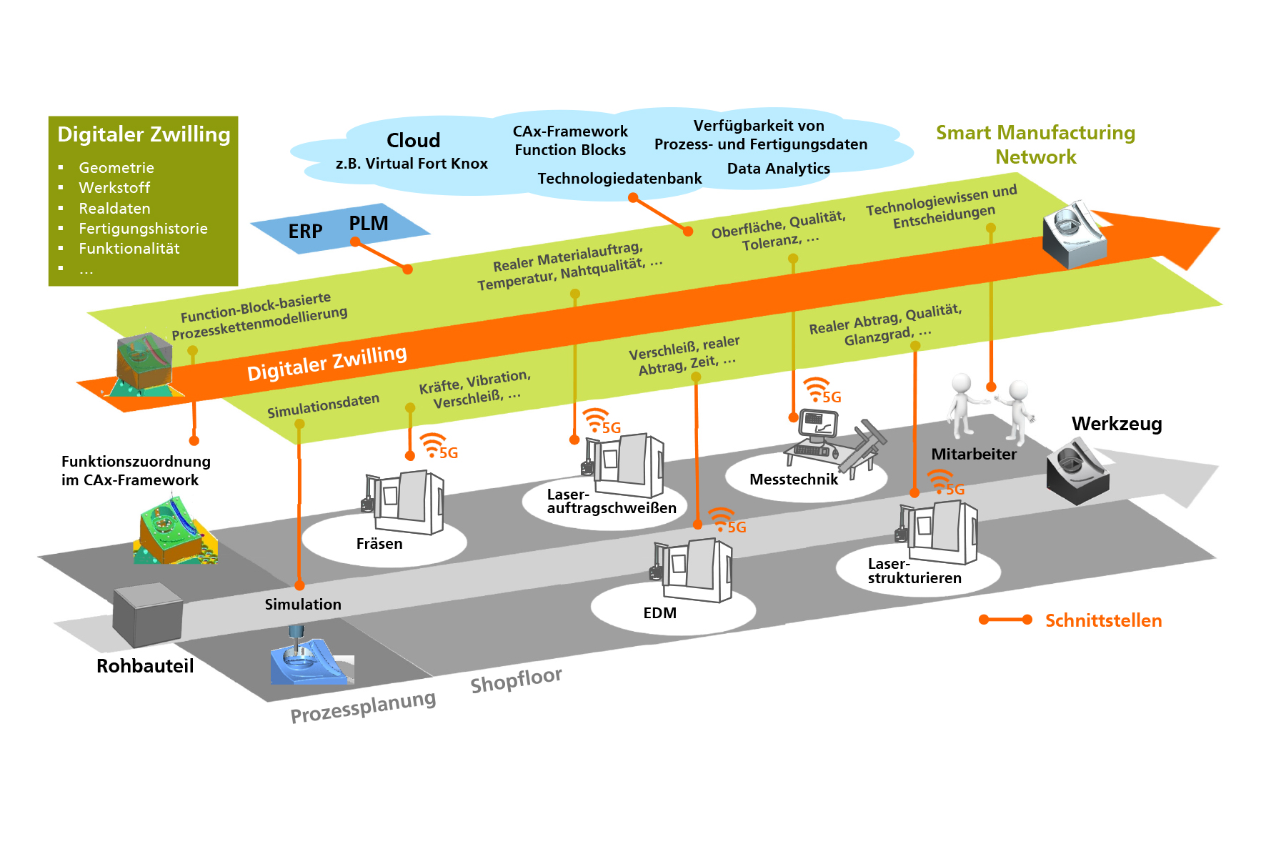 Durch ihre Teilnahme an der moderierten Forschungscommunity erhalten Unternehmen Zugang zu grundlegenden und praxisnahen Ergebnissen aus Forschung und Entwicklung: Sie profitieren nicht nur von den freigegebenen Daten aus Produktions- und Fertigungsprozessen sowie den passenden Softwareentwicklungen, die Ihnen für Testzwecke zur Verfügung stehen, sondern können auch auf einen umfassend vernetzten Maschinenpark der beteiligten Institute zugreifen. Modernste Sensorik, 5G-Datenübertragung und die Anbindung an die Fraunhofer-Cloud »Virtual Fort Knox« stehen bereits zur Verfügung und werden in der Testumgebung eingesetzt.