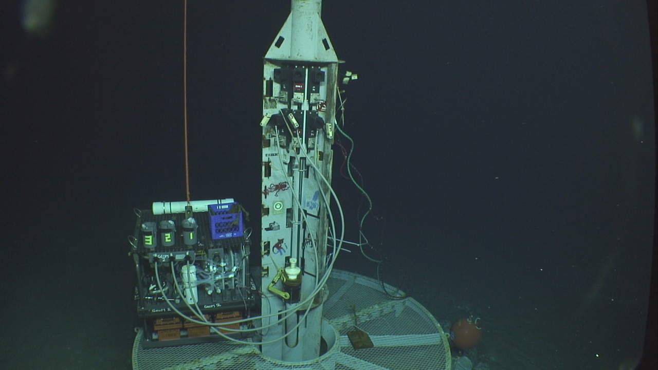 Das deutsch-amerikanische Forscherteam untersuchte nun Wasserproben aus mehreren Bohrungen in der Sargassosee östlich von Florida. Das Untersuchungsgebiet befindet sich am Rand des Mittelatlantischen Rückens, eines gewaltigen Unterwassergebirges, das sich einmal längs durch den Atlantik zieht. 2012 und 2014 entnahmen Wissenschaftler auf dem deutschen Forschungsschiff Maria S. Merian Wasserproben aus fest installierten Observatorien in mehreren Bohrungen innerhalb eines mehr als 4.000 Meter tiefen Ozeanbeckens am westlichen Rand des Gebirgszuges. Die Bohrungen reichen bis zu 300 Meter tief in den Meeresboden, wo sich festes, aber poröses Vulkangestein befindet. „Die permanent in der Ozeankruste installierten Observatorien erlauben es uns, den Abbau des gelösten organischen Materials über lange Zeitskalen zu untersuchen – das wäre in keinem Laborversuch möglich“, berichtet Osterholz. Am ICBM, wo sich eines der leistungsfähigsten Massenspektrometer der Welt befindet, wurde die Zusammensetzung des gelösten organischen Materials untersucht.