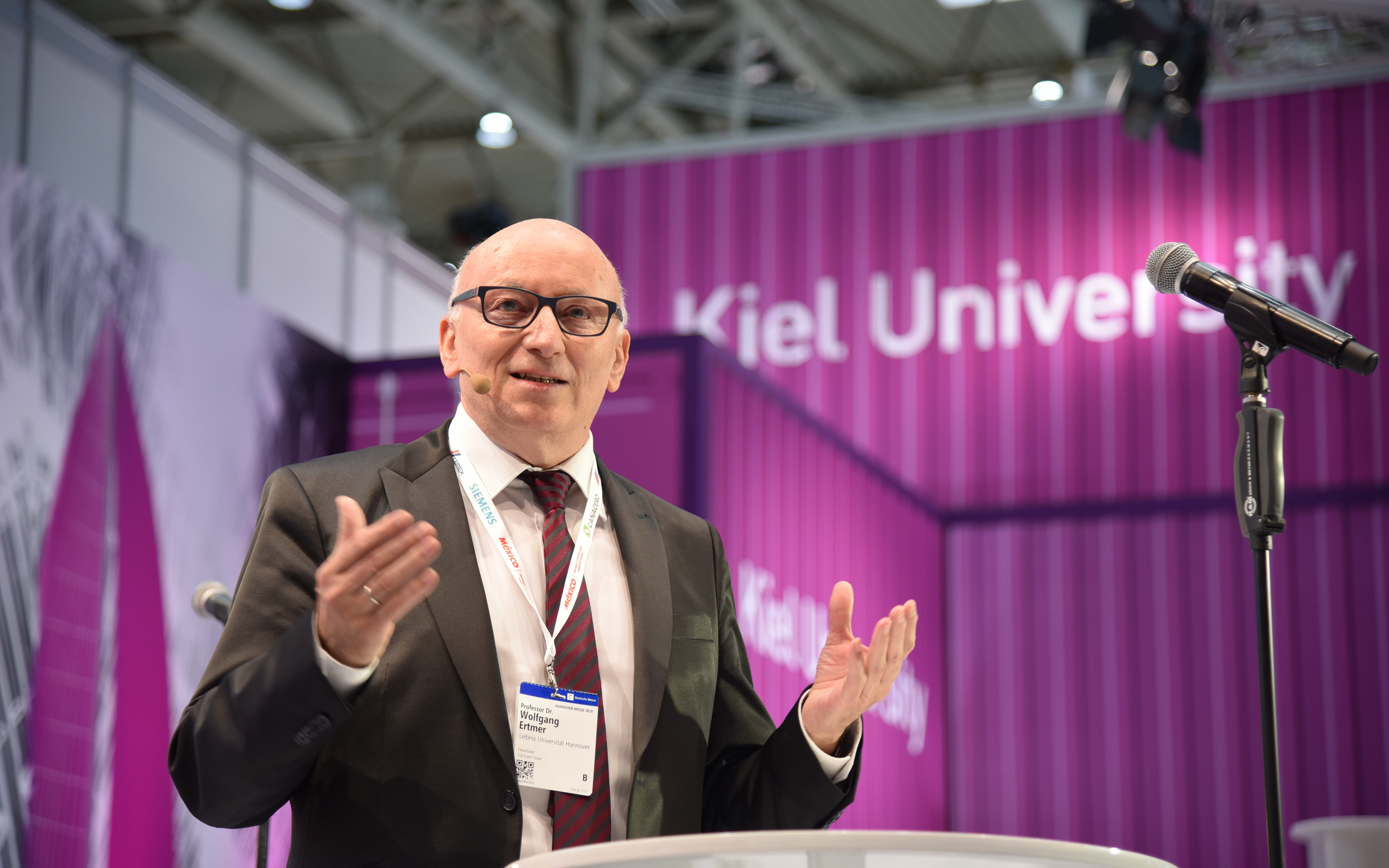 Zur Halbzeit der Hannover Messe zeigt sich der Präsident der Kieler Christian-Albrechts-Universität (CAU) sehr zufrieden mit der diesjährigen Präsentation der Landesuniversität auf der weltgrößten Industriemesse. „Wir haben in den letzten Tagen ungemein viele positive Rückmeldungen zu unserem Auftritt in Hannover erhalten und erfahren hier viel Respekt und Anerkennung für unsere Arbeit. Das betraf sowohl den Stand selbst als auch die Inhalte, die wir hier zeigen und vorstellen. Kiel und Schleswig-Holstein rücken damit als Standort der Spitzenforschung und Innovation auf die mentale Landkarte vieler Entscheiderinnen und Entscheider“, fasste Kipp seine Eindrücke der ersten drei Messetage zusammen.